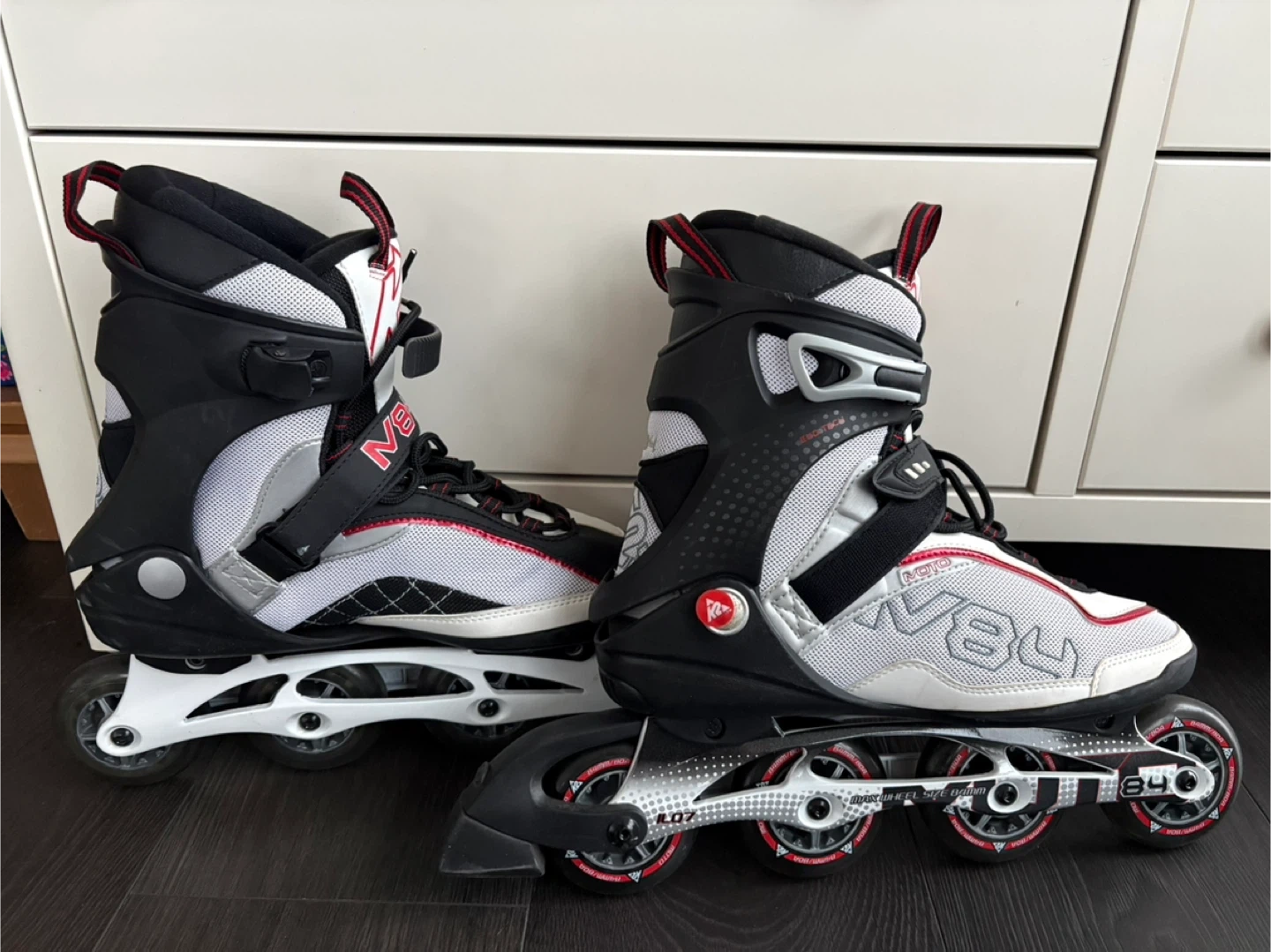 K2 Moto 84 M men’s inline skates. Featuring 84mm wheels and ILQ7 bearings. Great condition, used only a few times. Free protective hand pads are included.