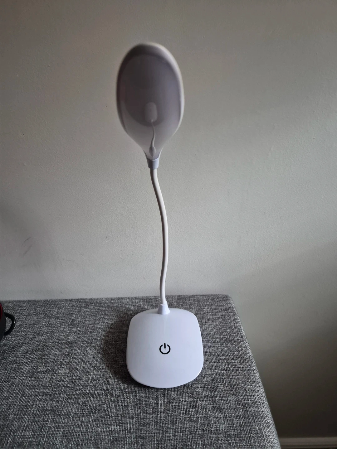 This portable desk lamp features a flexible gooseneck and a touch-sensitive power button. It's powered by 3 AA batteries. Great for a bedside table or a workspace!