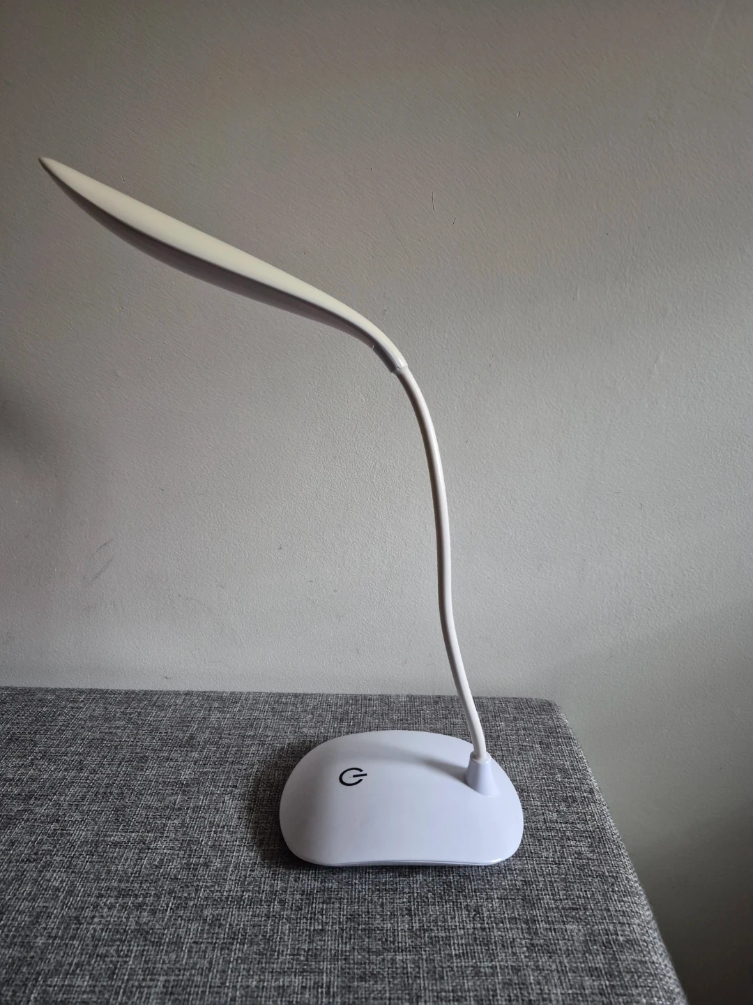 This portable desk lamp features a flexible gooseneck and a touch-sensitive power button. It's powered by 3 AA batteries. Great for a bedside table or a workspace!