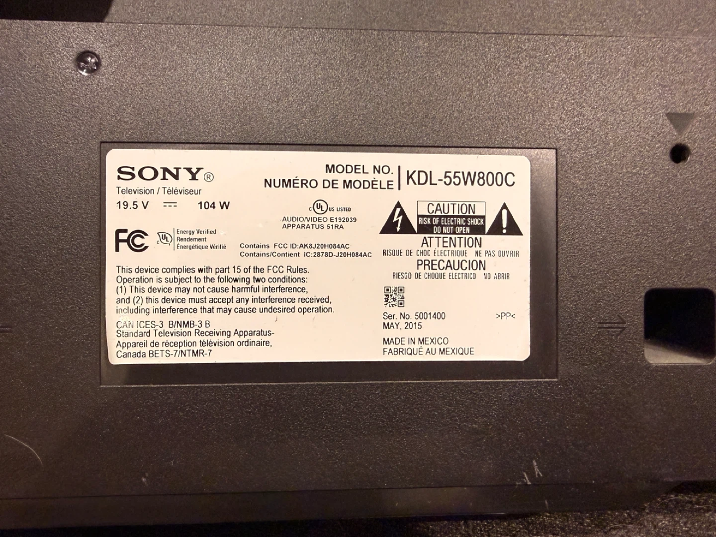 This is a 55-inch Sony KDL-55W800C smart TV. It's a great TV works amazing. Nothing wrong with it and it’s mint condition with few scratches in the back frame.