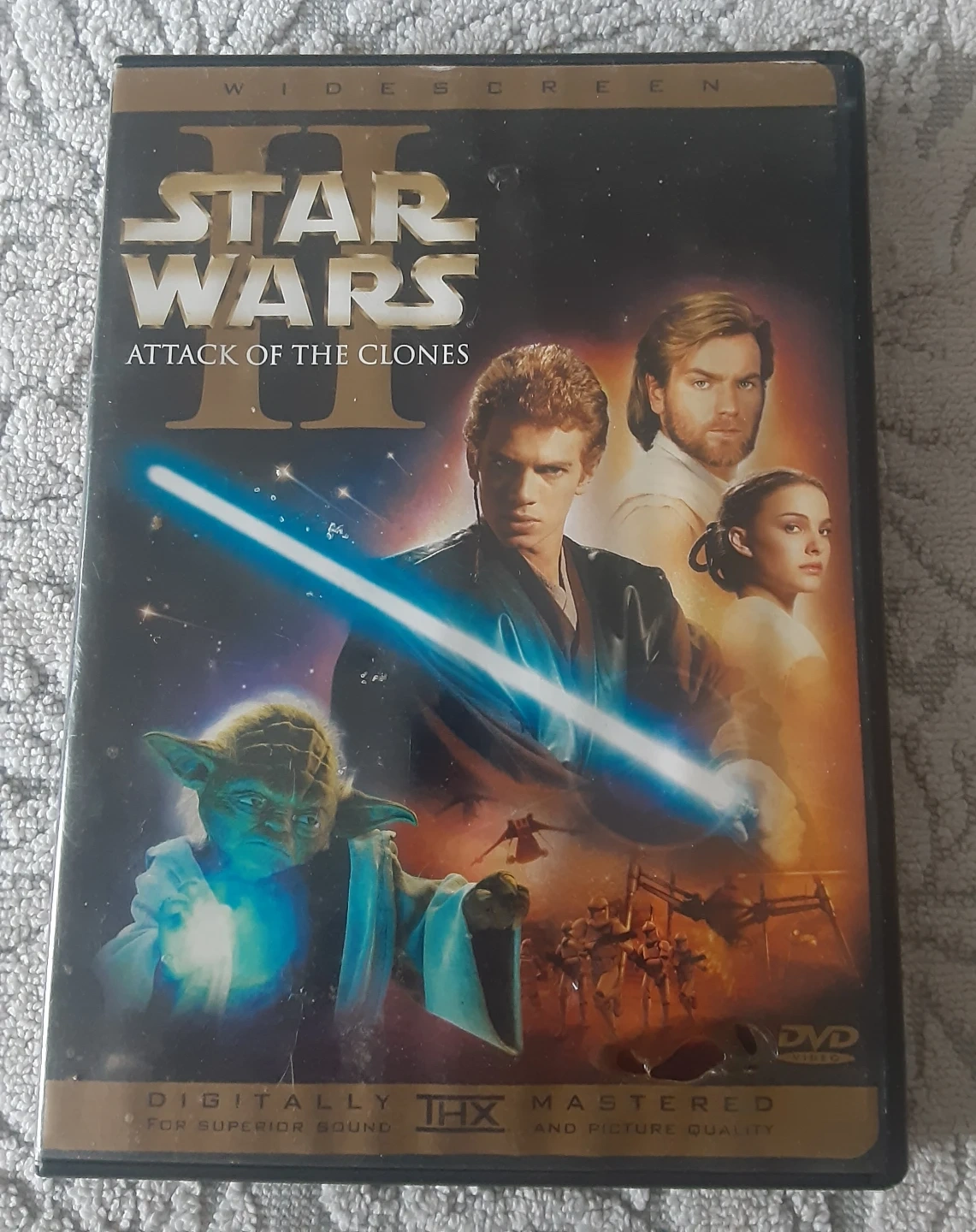 This is the Star Wars Episode II: Attack of the Clones DVD. It's a widescreen edition with digitally mastered THX sound and picture quality. Includes two discs with the main feature and special features.