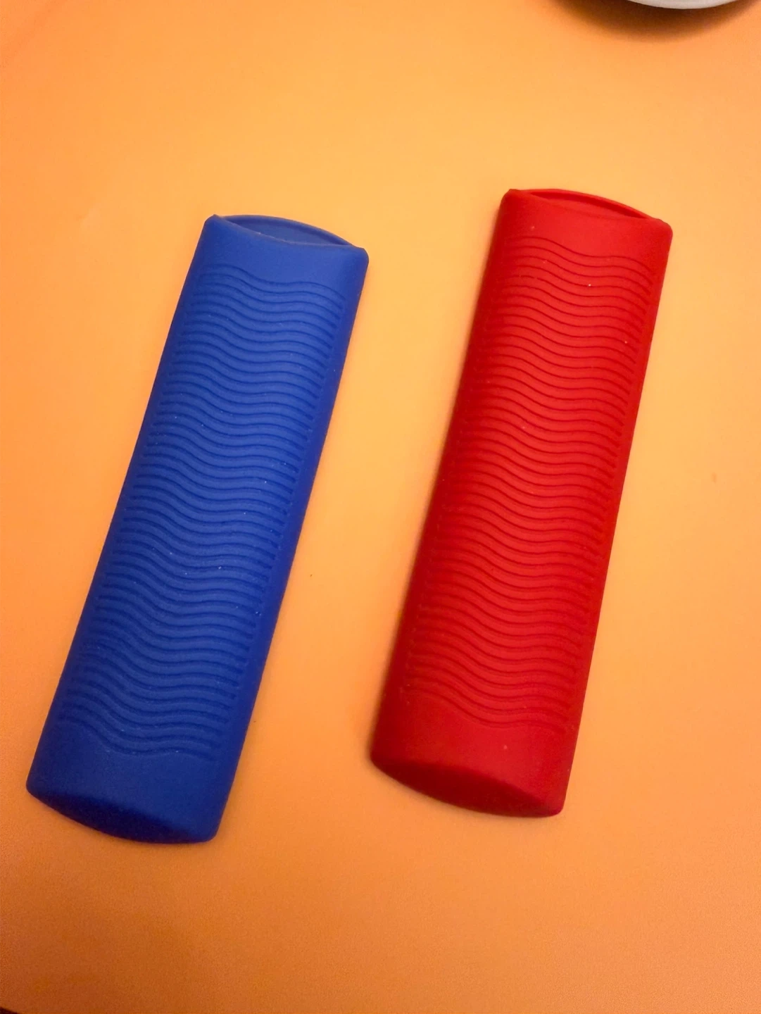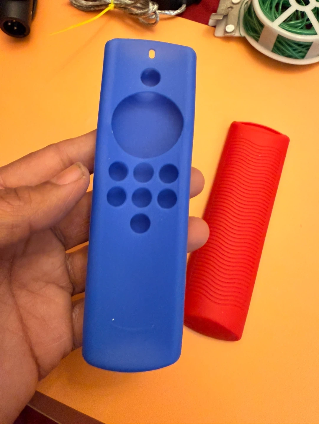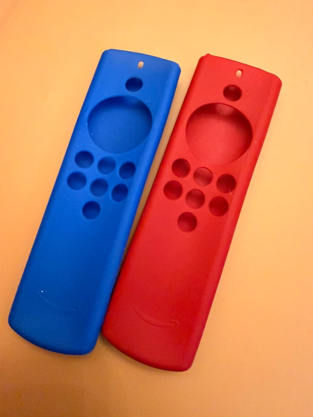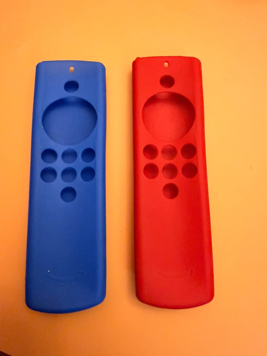 Protect your Amazon Fire TV Stick remote with these two silicone cases. One is blue and the other is red. They're made of durable silicone material. These cases help prevent scratches and damage to your remote!