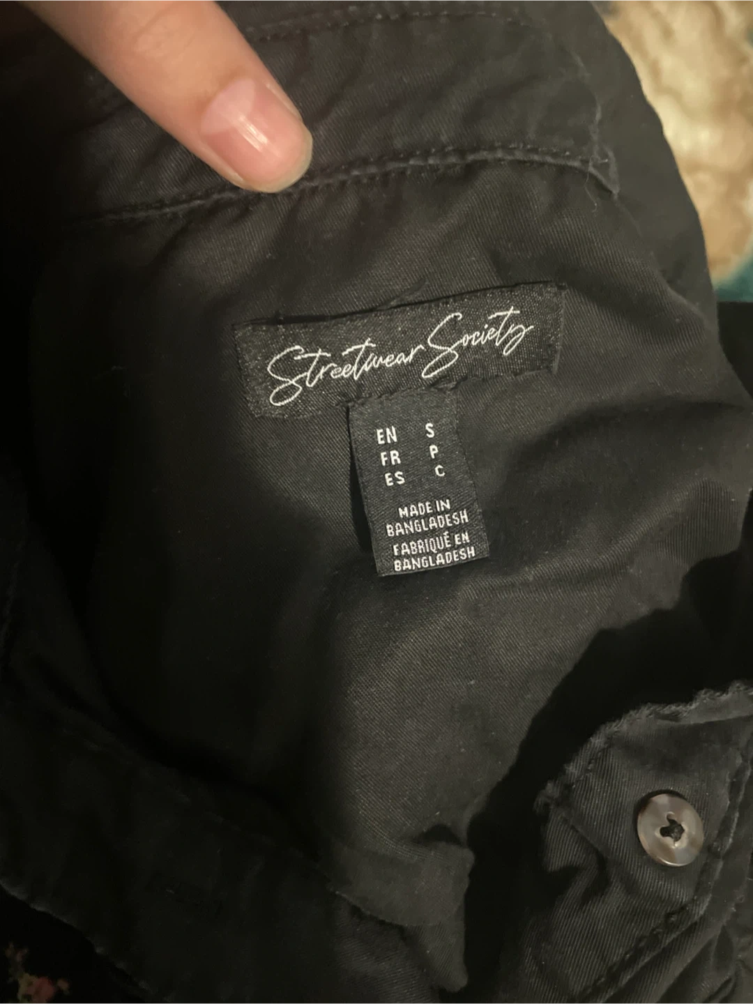 This is a black button-up shirt dress from Streetwear Society. It's a size small and made in Bangladesh. The material appears to be a cotton blend, offering a comfortable fit. This versatile dress can be worn casually or dressed up! I got this from Urban Planet and just wore it few times and never wore it again.