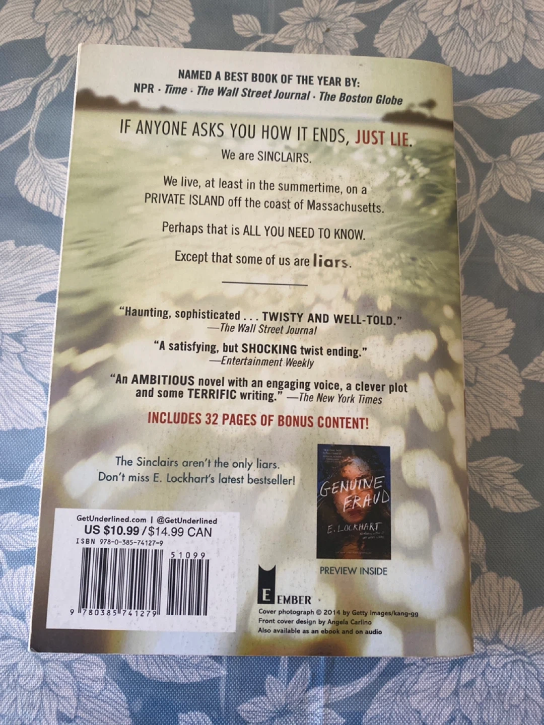 We Were Liars by E. Lockhart is a New York Times bestseller. It's an ambitious novel with an engaging voice and terrific writing. Includes 32 pages of bonus content!