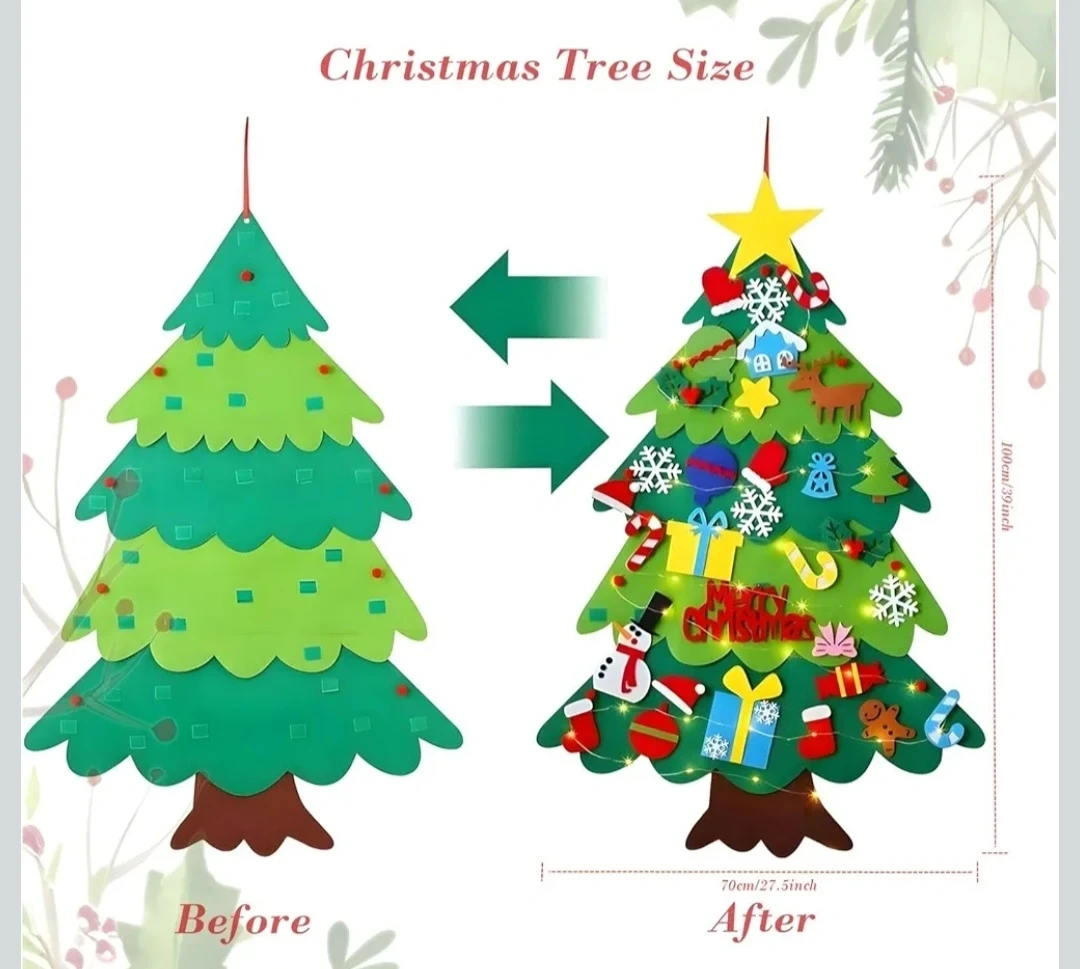 32 Removable Ornaments: The set includes a variety of 32 colorful and festive felt ornaments. These removable decorations provide endless opportunities for you to personalize their tree, fostering creativity and holiday spirit.