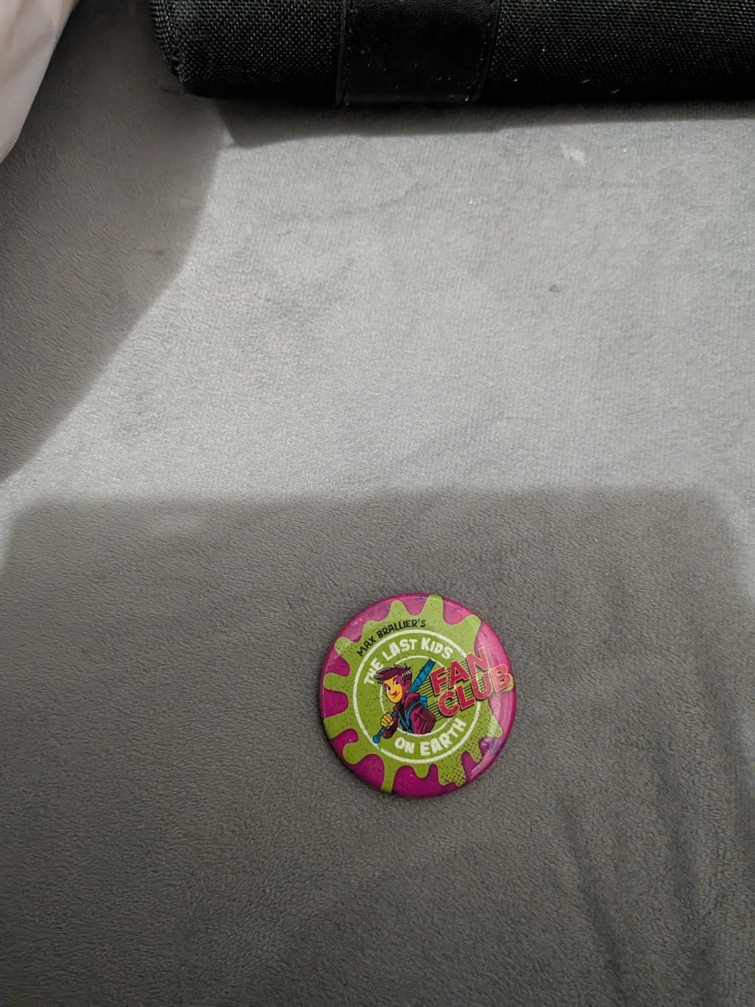 This is a pin for Max Brallier's The Last Kids on Earth Fan Club. It features a character graphic and vibrant colors. It's a fun collectible for fans of the series!š„