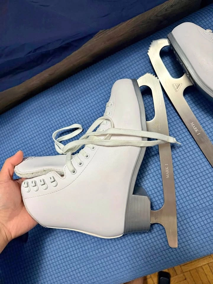 Size 10 womens. I am size 8 but this fits me well with extra room. Used for one winter season. Sharpened last february 2025.