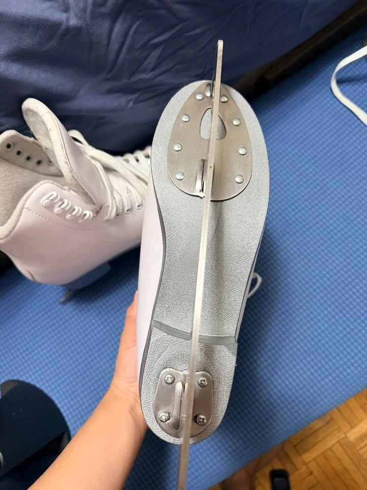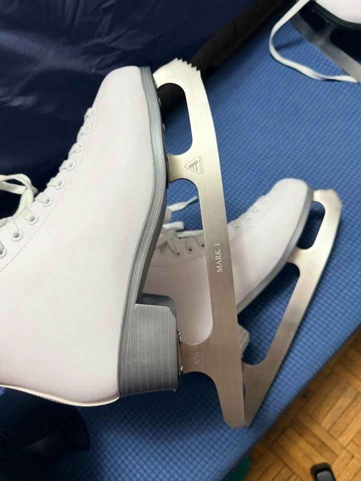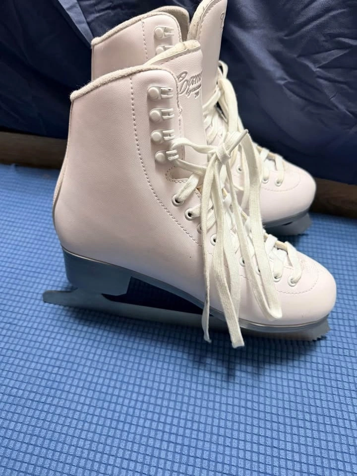 Size 10 womens. I am size 8 but this fits me well with extra room. Used for one winter season. Sharpened last february 2025.