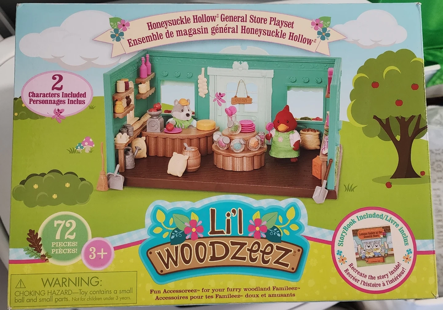 This Li'l Woodzeez General Store Playset includes 2 characters and 72 pieces. It comes with a storybook for recreating the story inside. It's a fun accessory set for woodland Famileez.