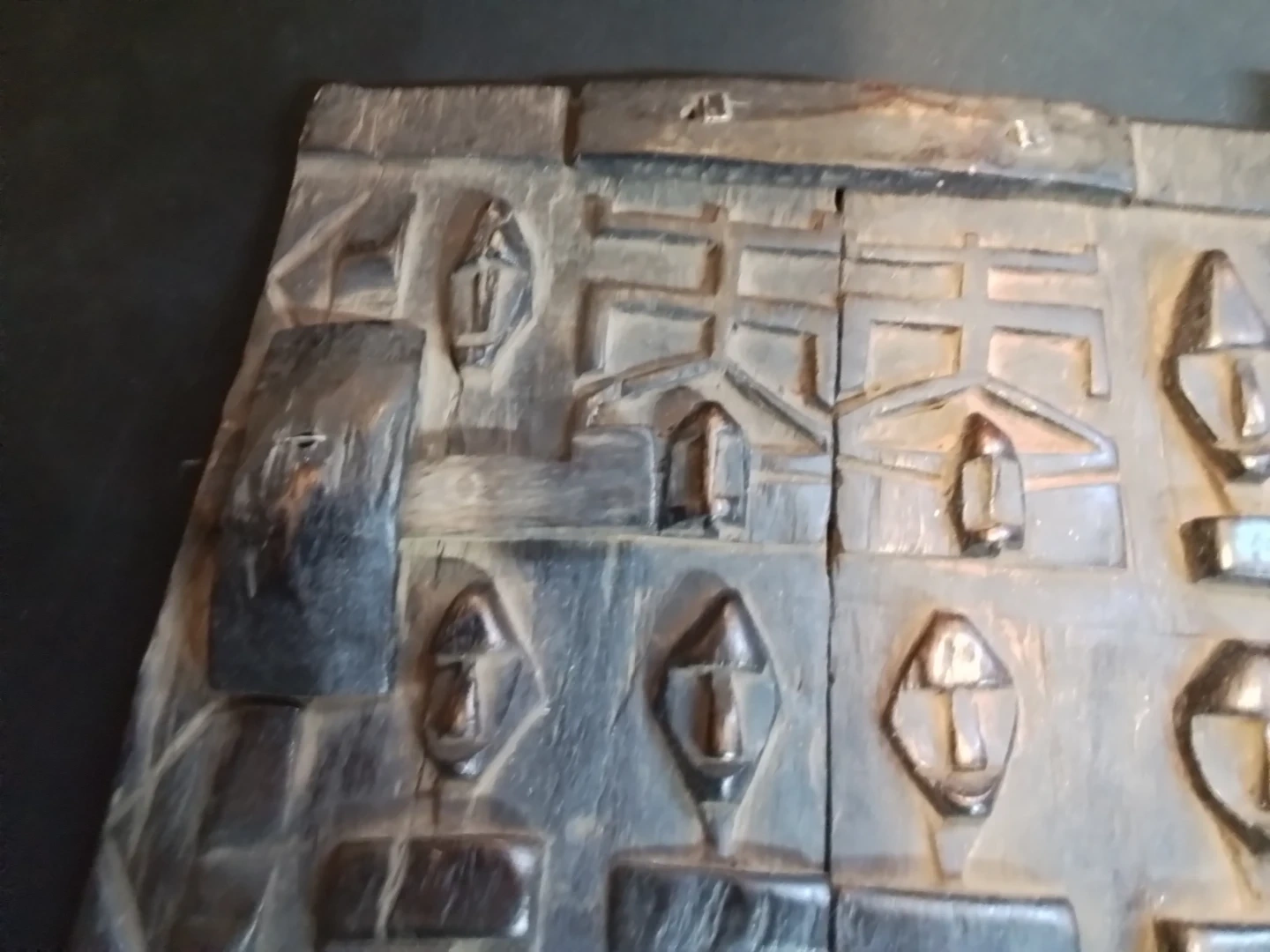 Discover this intriguing antique wooden tribal door, sized at approximately 9.5x11 inches. This unique piece showcases traditional craftsmanship and intricate carvings, reflecting its cultural heritage. Please note, this is a used item with some signs of age.