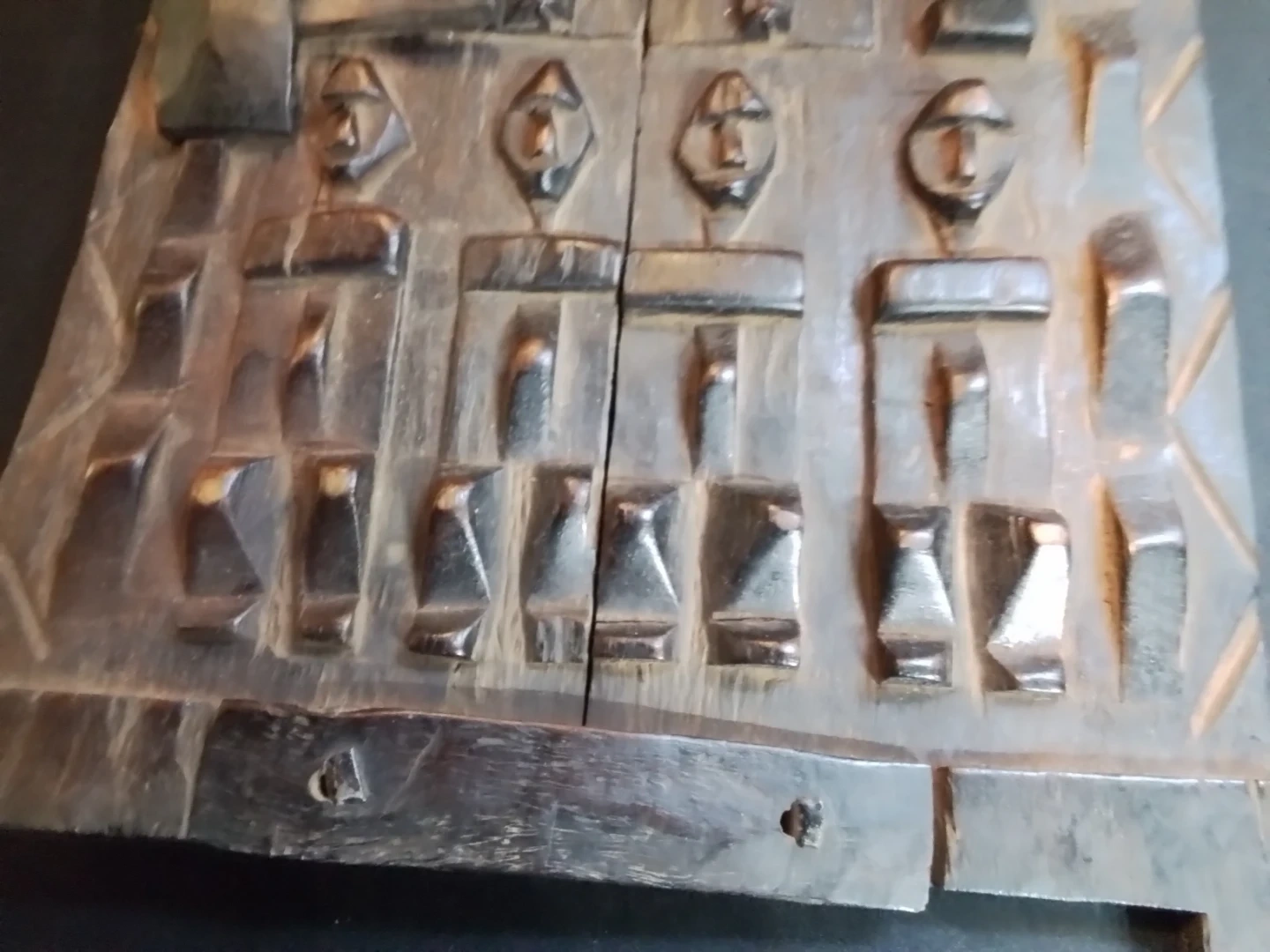 Discover this intriguing antique wooden tribal door, sized at approximately 9.5x11 inches. This unique piece showcases traditional craftsmanship and intricate carvings, reflecting its cultural heritage. Please note, this is a used item with some signs of age.