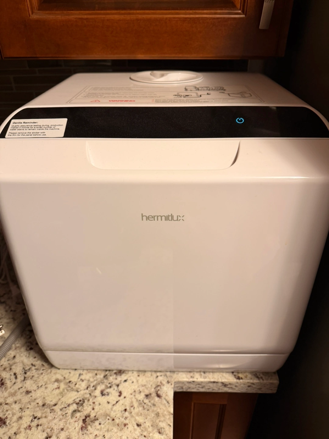 This Hermitlux countertop dishwasher offers 5+1 wash programs to meet your needs. It's a compact size, ideal for small apartments. It includes standard, quick, eco, strong, and fruit washing modes, plus a dry mode.
