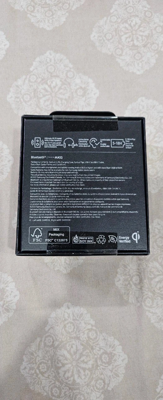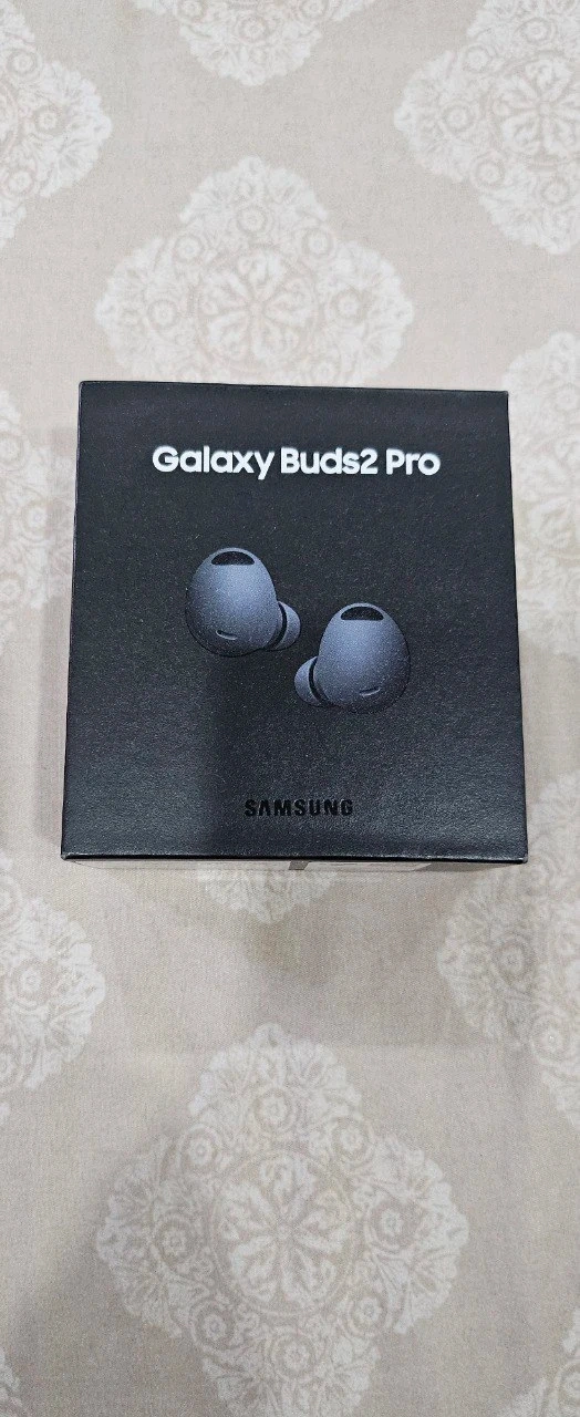 Selling a pair of Samsung Galaxy Buds2 Pro. They are in like new condition and come with the original box. These earbuds provide ultimate hi-fi sound and are comfortable for all-day wear. The box includes the earbuds, charging case, and a USB-C cable. Get ready to enjoy up to 5-18 hours of playtime!