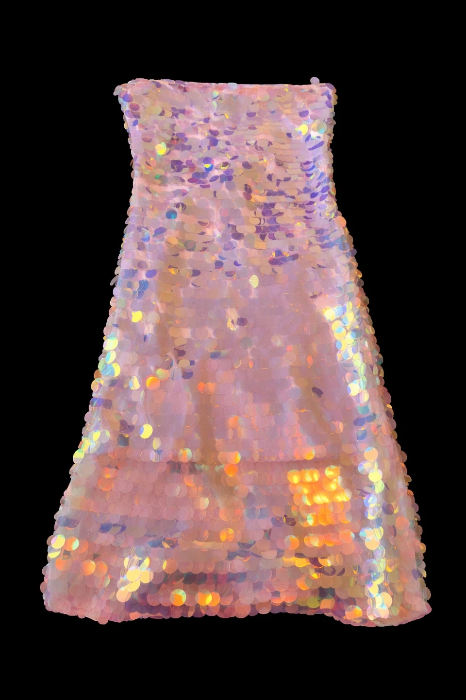 Here's a fun and sparkly sequin mini dress! Perfect for a night out or a special occasion. The sequins catch the light beautifully, giving it a unique and eye-catching look. It's in great condition and ready for a new owner!