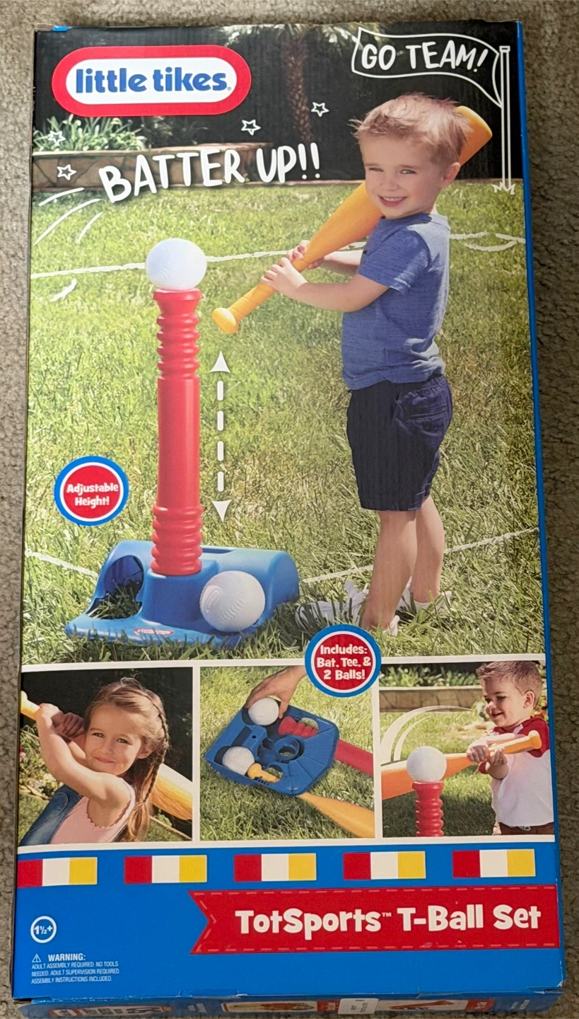 Little Tikes TotSports T-Ball Set includes the bat, tee, and 2 balls! It has adjustable height, perfect for kids 1 1/2 years and up. Adult assembly and supervision are required.