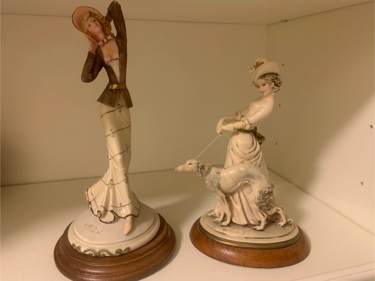 Pair of Elegant Lady Figurines with Dogs