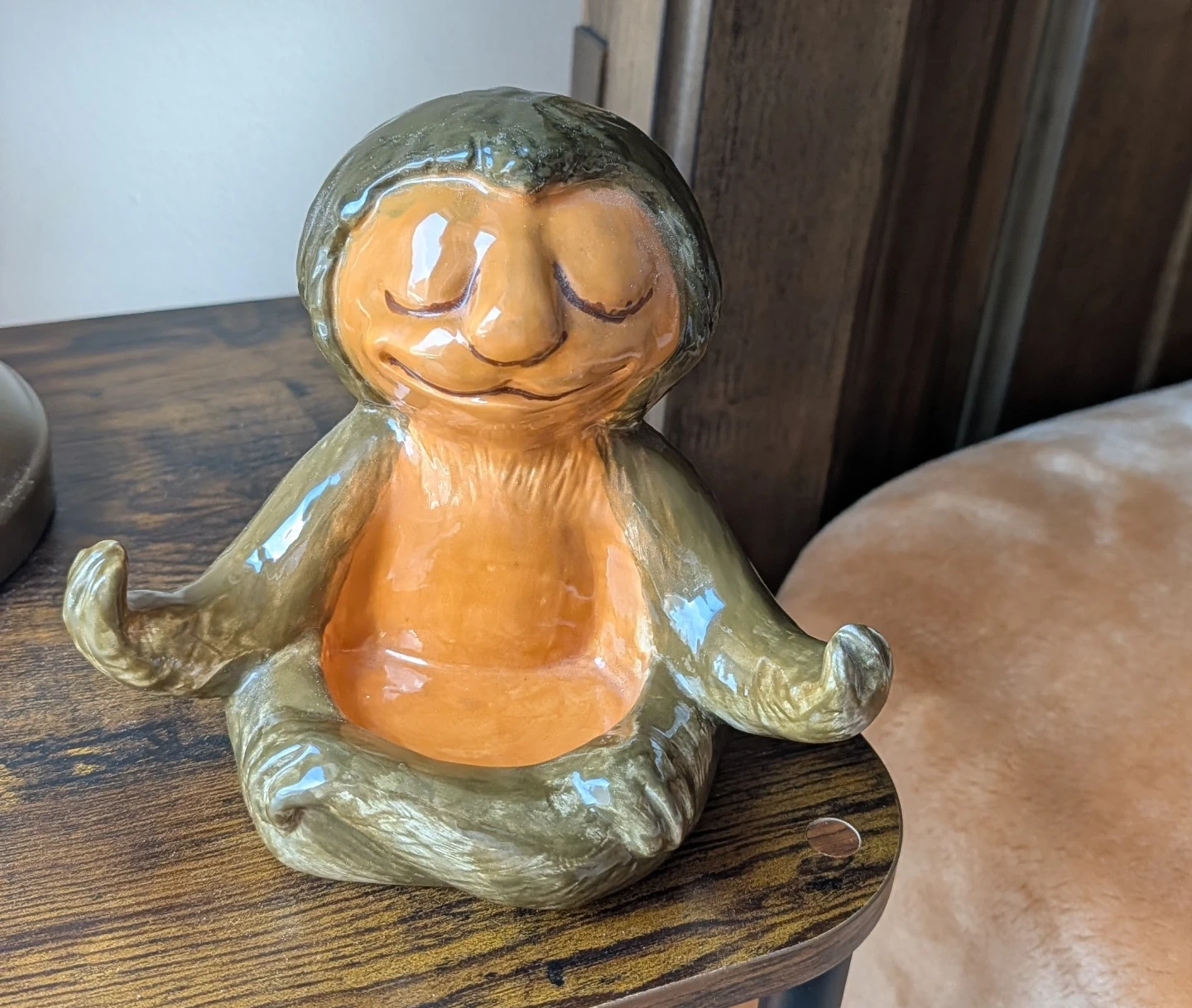 This fun ceramic sloth is meditating. It's great for holding small trinkets or keys. Perfect for adding a bit of whimsy to your space!