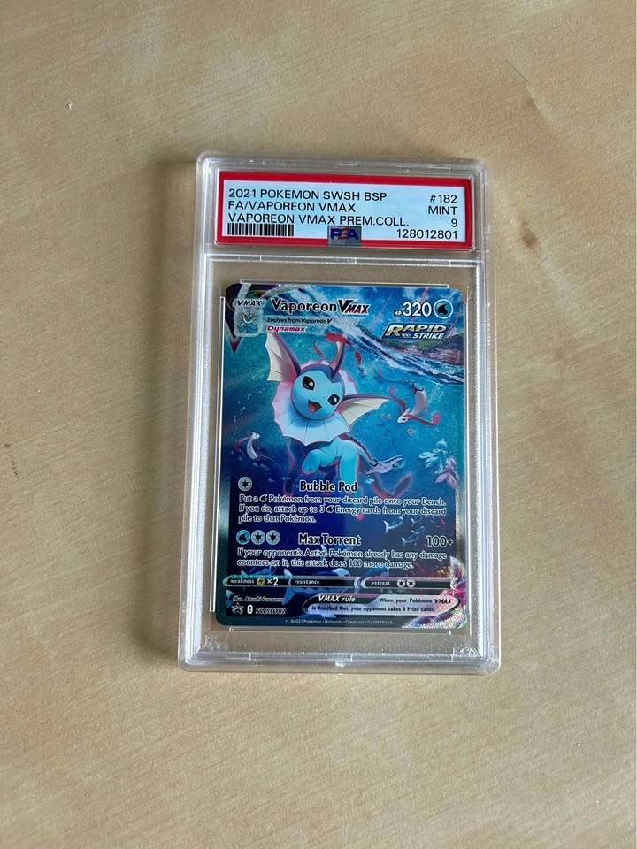 Buy & SellVaporeon Vmax promo PSA 9Vaporeon Vmax promo PSA 9$120Looking for trades at 70-80% or $140 cash. Feel free to reach out with any offers!WHERE TO MEETCheck LocationView MapSELLERJacob WongBlundell492 reviews0 chats·0 favorites·8 viewsSEND CHAT TO SELLERHi Jacob Wong! I’m interested in your listing.Hi Jacob Wong! I’m interested in your listing.Get the Karrot app to chatSign In to chat