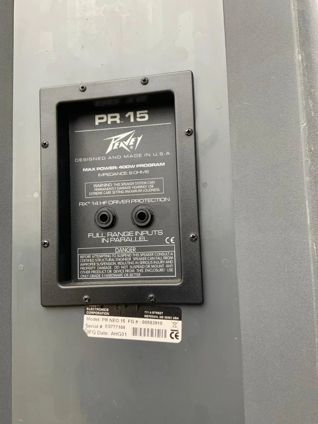 Two Peavey PR 15 PA speakers. Full range inputs in parallel. RX14 HF driver protection. 400W program power. 8 Ohms impedance. Working well You can check them out Before you buy selling only speakers no cables no stands just the speakers price can be negociable for Serious offers