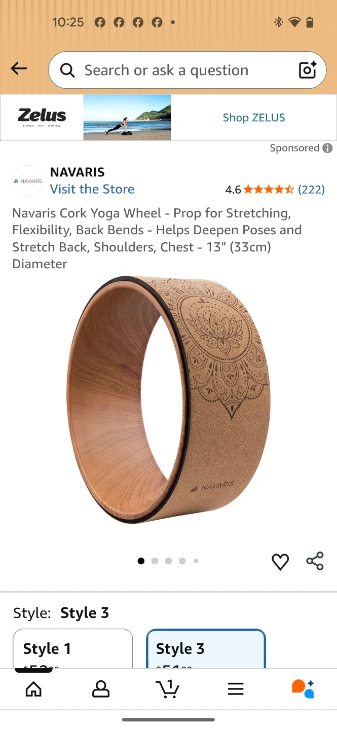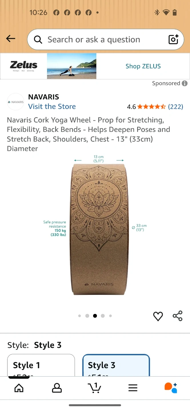 This is a Navaris cork yoga wheel, prop for stretching and back bends. It's 13" (33cm) in diameter and has a pure cork exterior. The wheel supports safe pressure resistance up to 330 lbs.