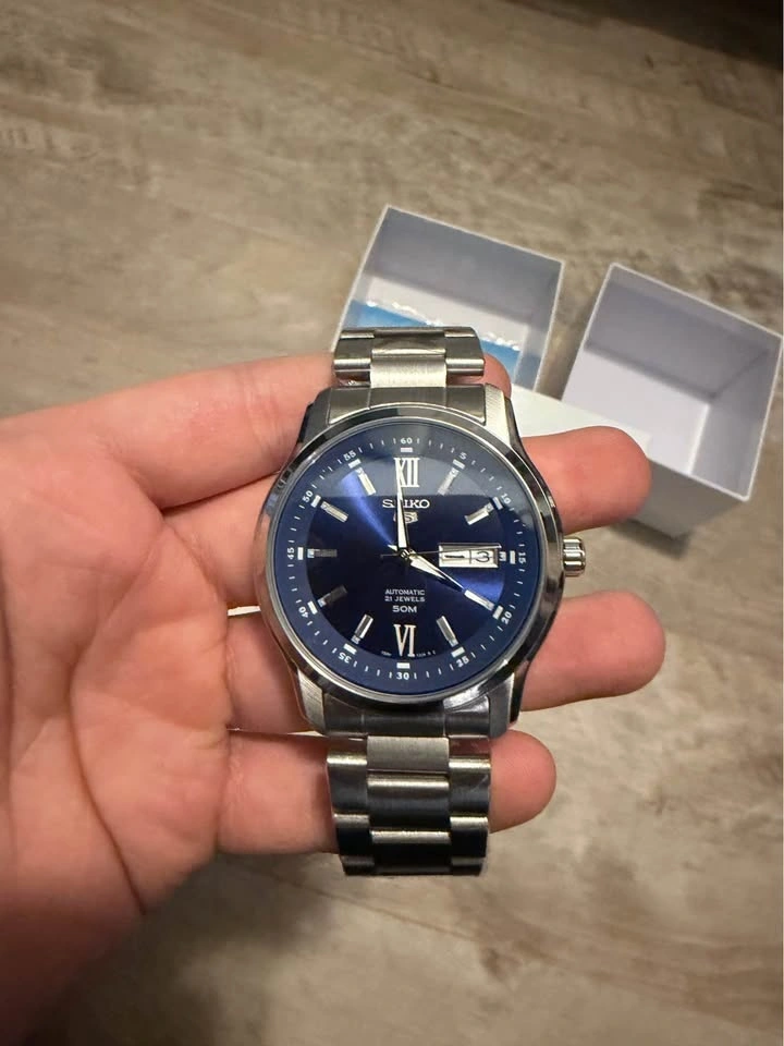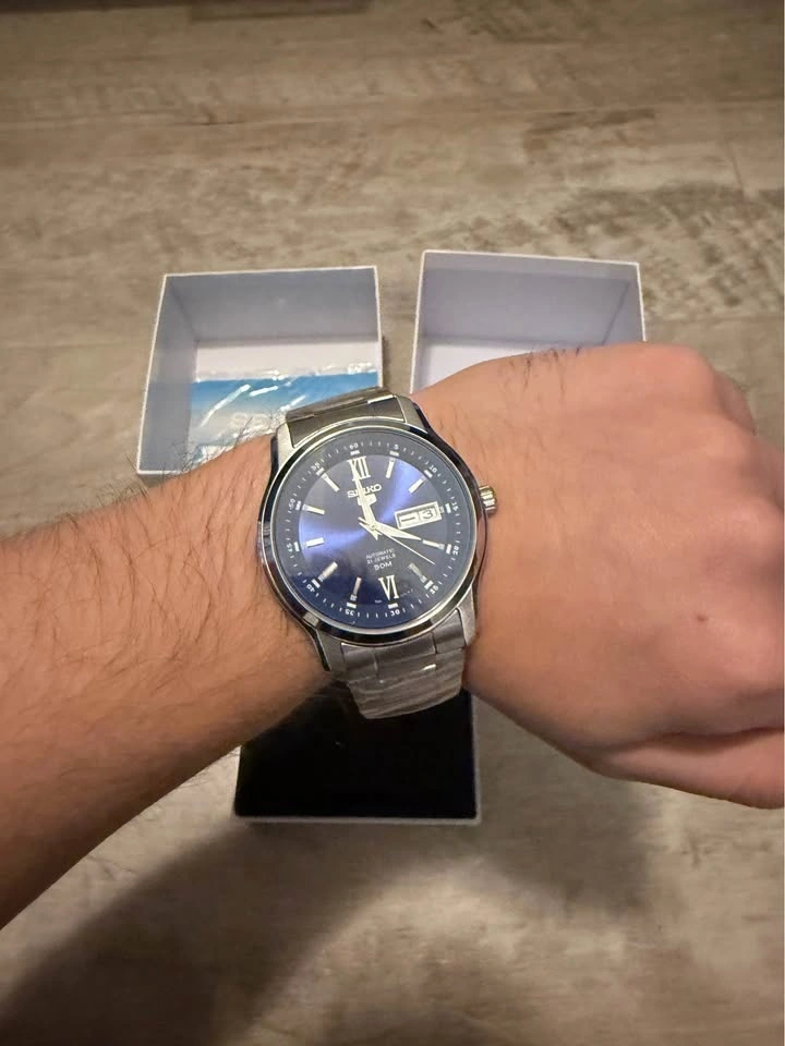 For sale a Seiko SNKP17 automatic watch in new condition. I only tried it on once and am selling it because it is large for my wrist. It was a gift from my wife and was originally purchased from Amazon. Makes a great gift.