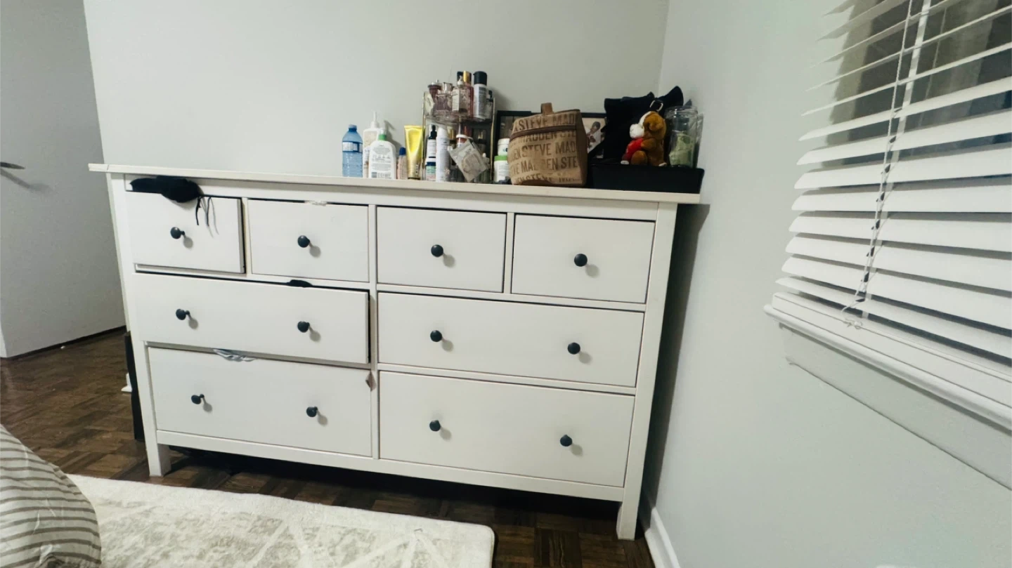 Selling a white IKEA Hemnes dresser. It's in used condition, with some wear and tear as shown in the photos. Perfect for extra storage in a bedroom or closet! Smoke pet free home Pick up only