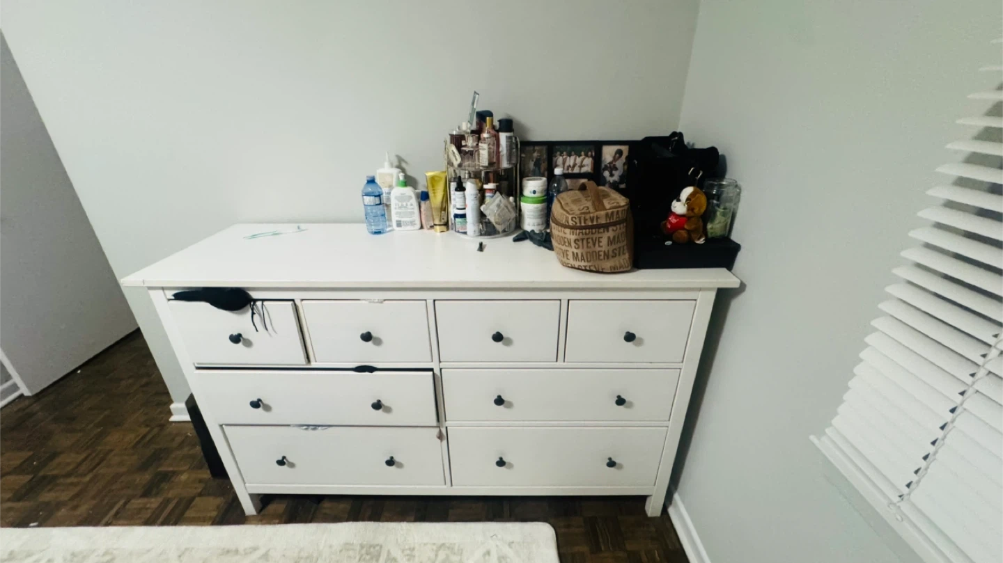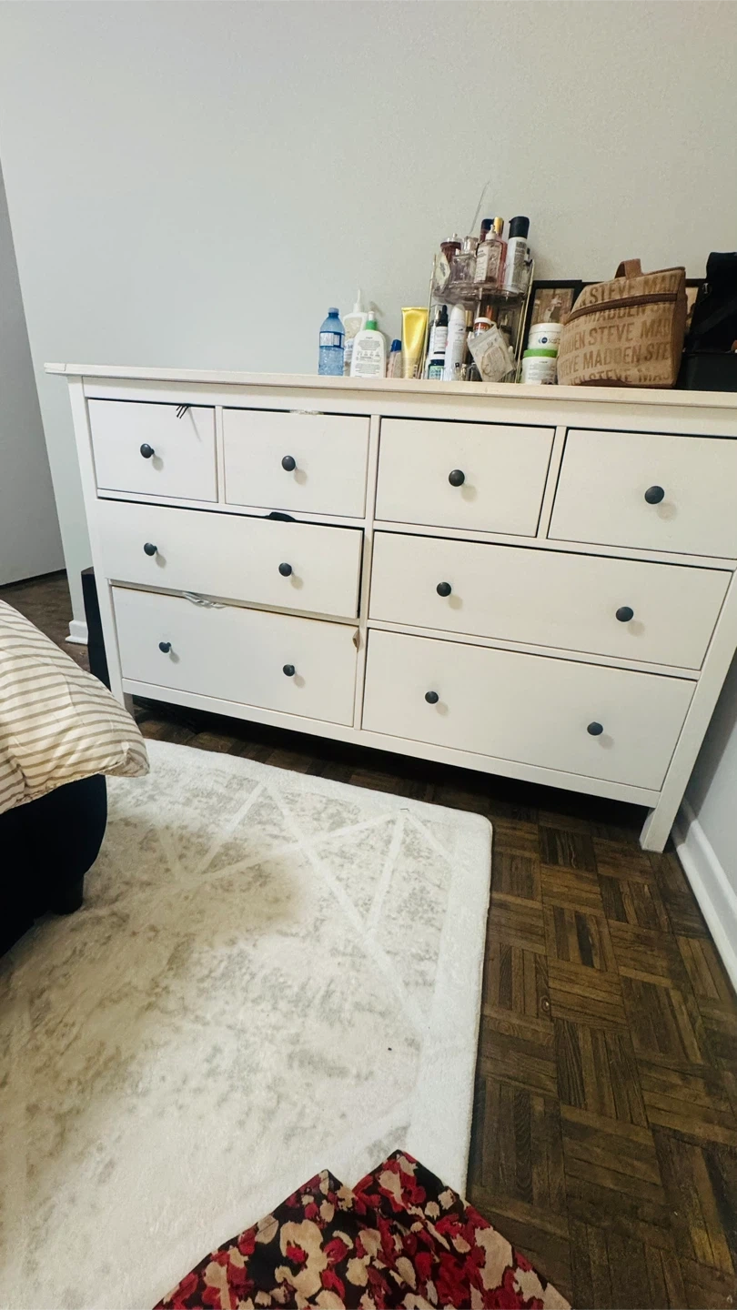Selling a white IKEA Hemnes dresser. It's in used condition, with some wear and tear as shown in the photos. Perfect for extra storage in a bedroom or closet! Smoke pet free home Pick up only