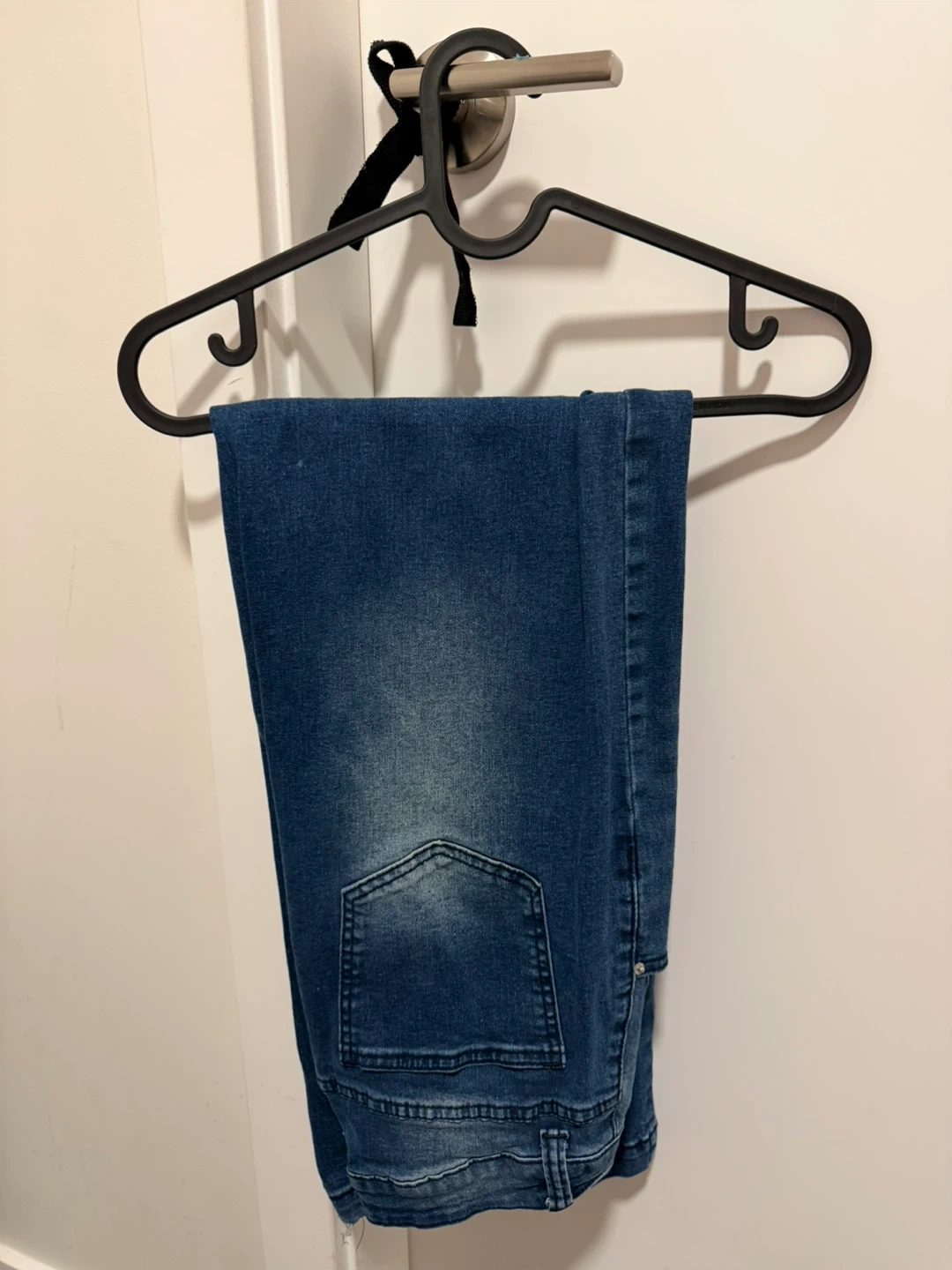 Classic blue denim jeans with a faded wash. Comfortable and versatile for everyday wear. Made from durable denim material.