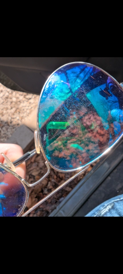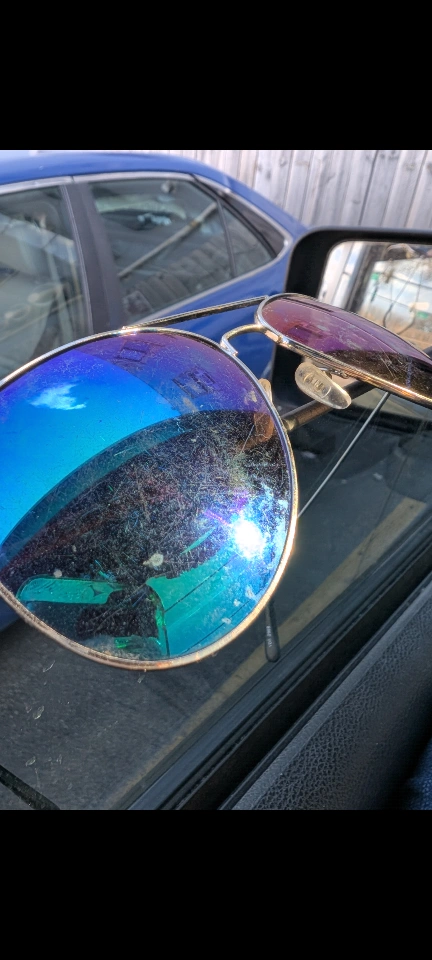 Colorful sunglasses with "Ray Ban" monogram in corner of lens. See photos of wear. From home with dogs. North Center (Chicago) near Damen & Montrose