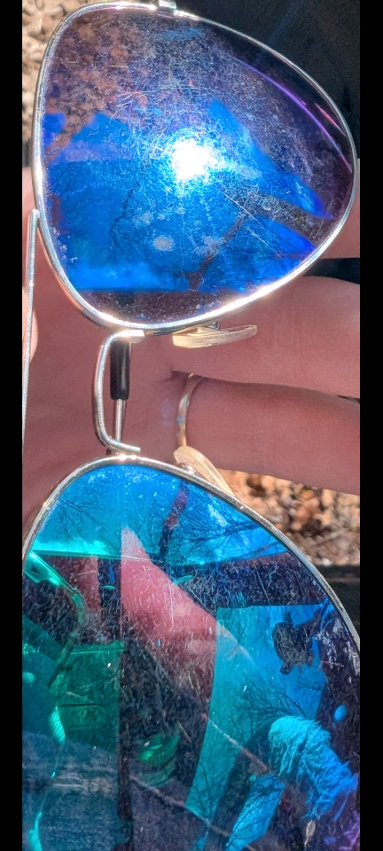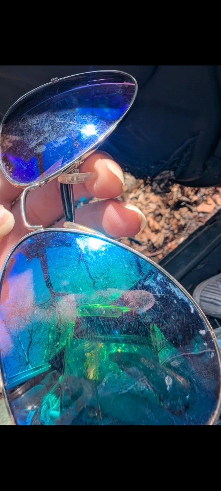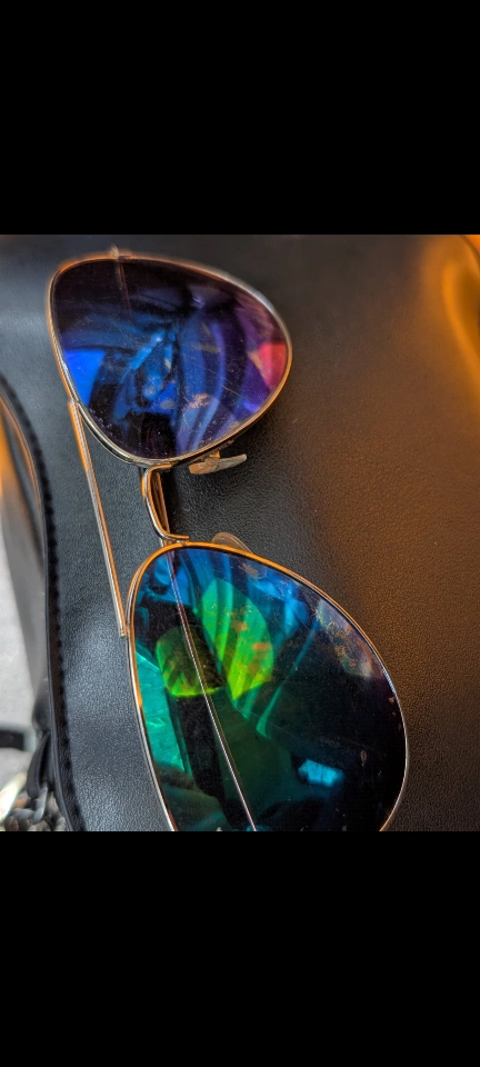 Colorful sunglasses with "Ray Ban" monogram in corner of lens. See photos of wear. From home with dogs. North Center (Chicago) near Damen & Montrose
