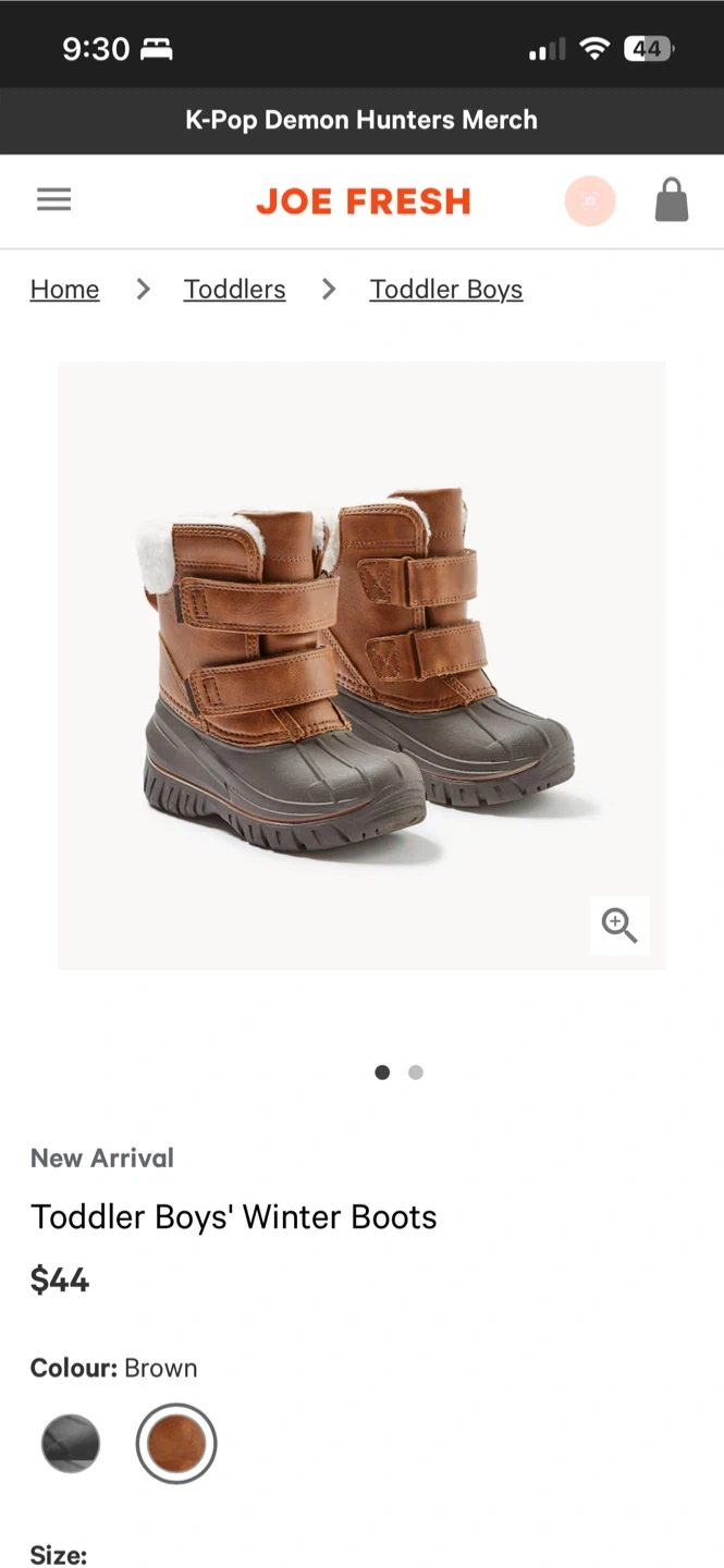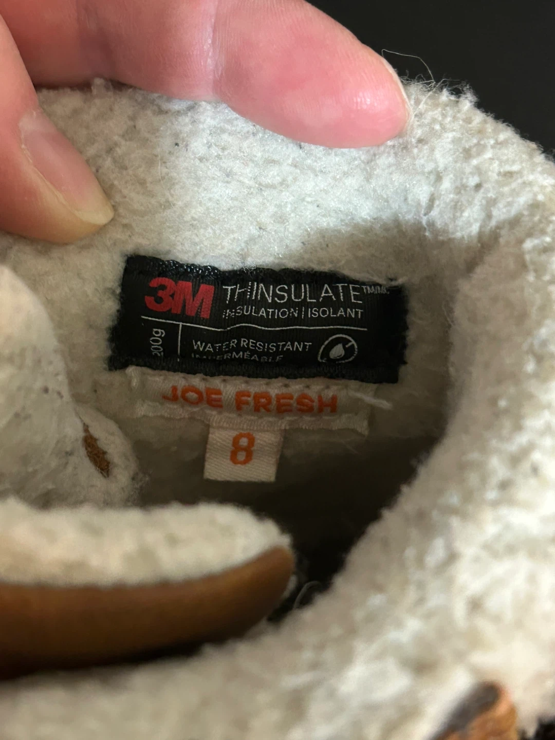 These Joe Fresh winter boots are size 8 and feature 3M Thinsulate insulation. They're water-resistant and have a cozy sherpa lining. Double hook-and-loop straps make them easy for little ones to get on and off!