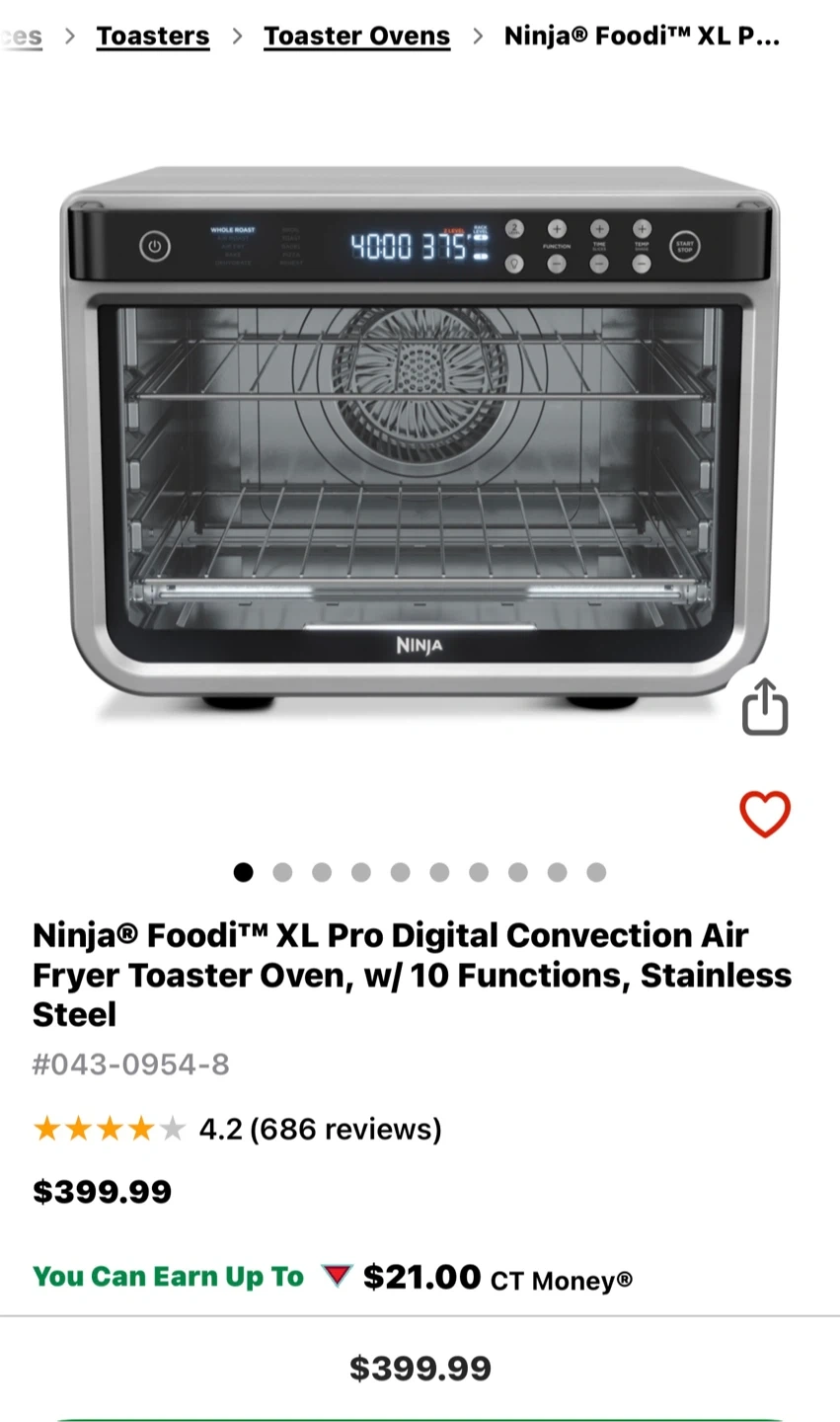 Ninja Foodi XL Pro Air Fryer Toaster Oven Stainless Steel