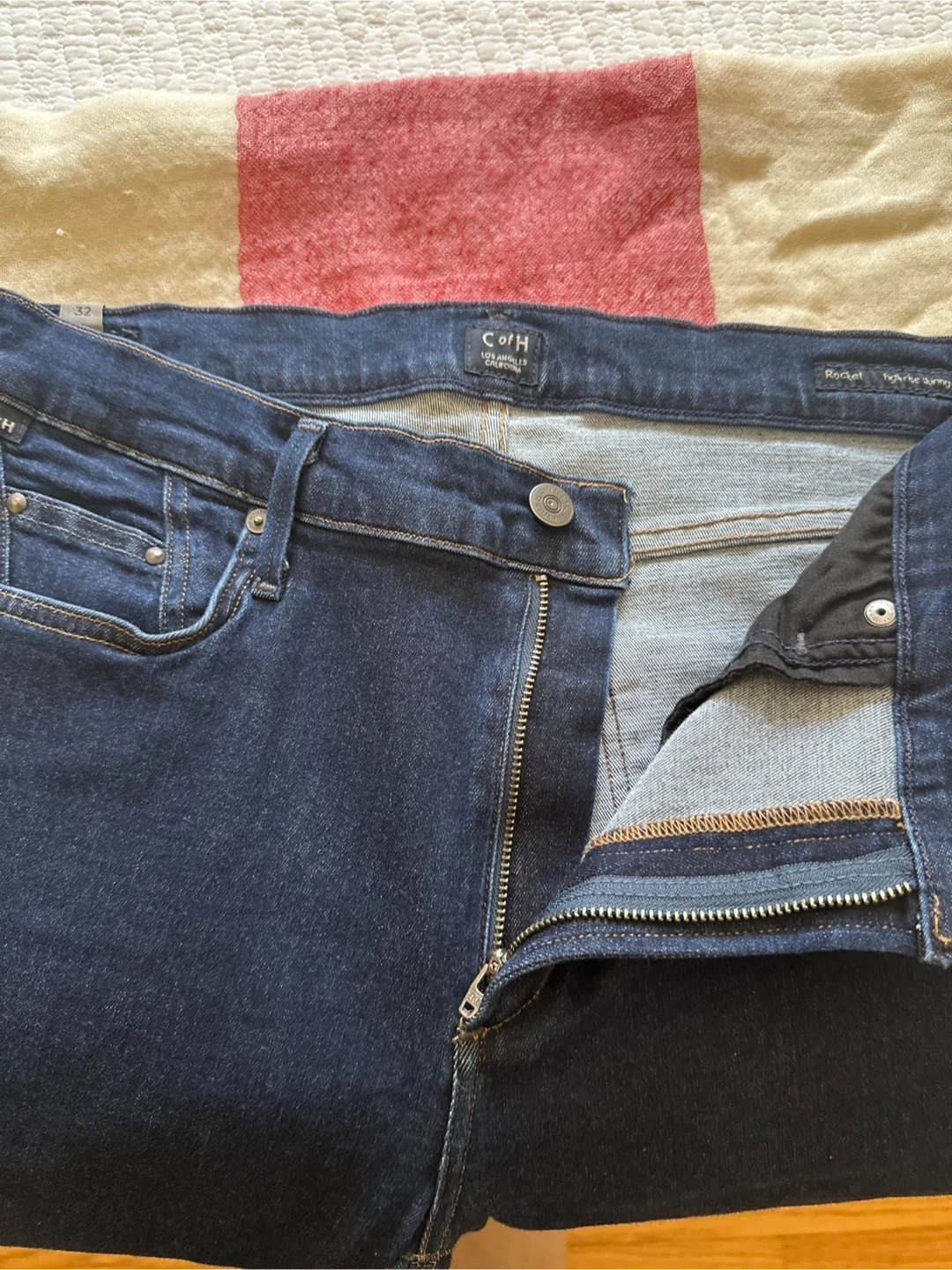 Selling a pair of Citizens of Humanity Rocket jeans in size 32. They are a dark wash and in great condition. These jeans are super flattering and comfortable!