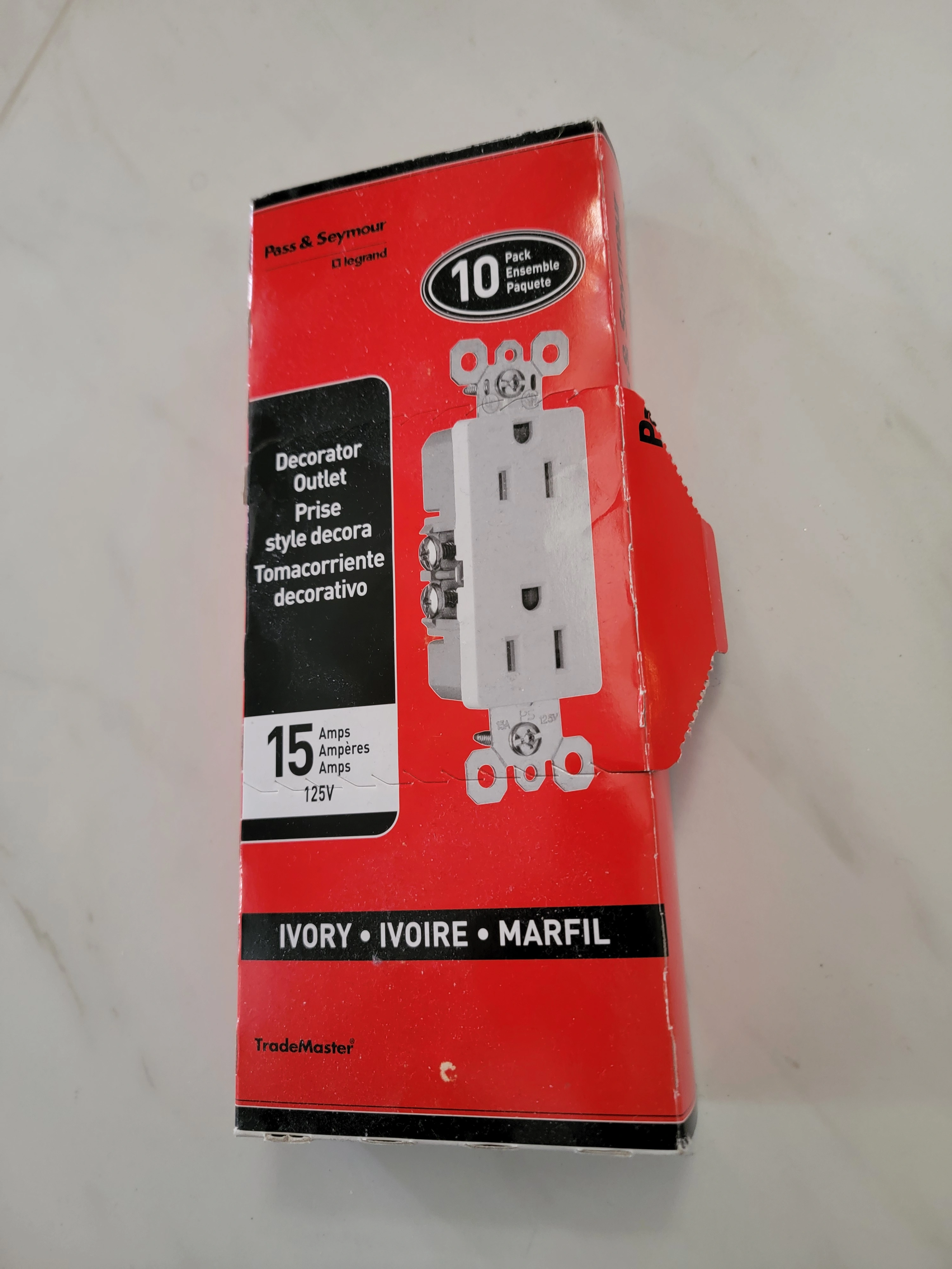 Never used Ivory-coloured Decorator Outlets, still in unopened box, tho flap was opened to confirm colour. Similar package selling for $20+HST in stores