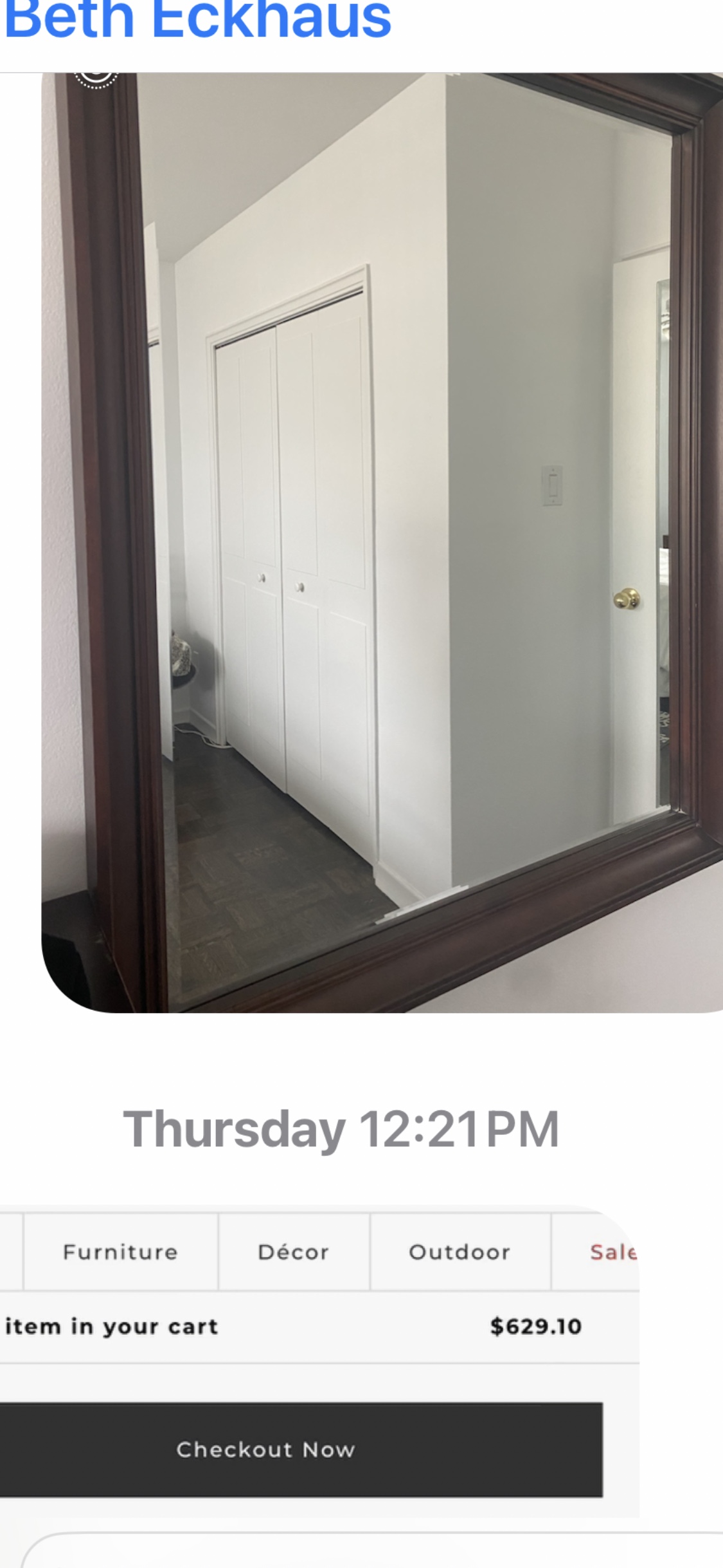 Buy & SellWood frame mirrorWood frame mirror$60Beautiful wood frame mirror. Can be hung or propped up against a wallConditionLike newDimensions50” by 40”by 2”WHERE TO MEETCheck LocationView MapSELLERJudyForest Hill N634 reviews0 chats·1 favorites·21 viewsSEND CHAT TO SELLERHi Judy! I’m interested in your listing.Hi Judy! I’m interested in your listing.Get the Karrot app to chatSign In to chat
