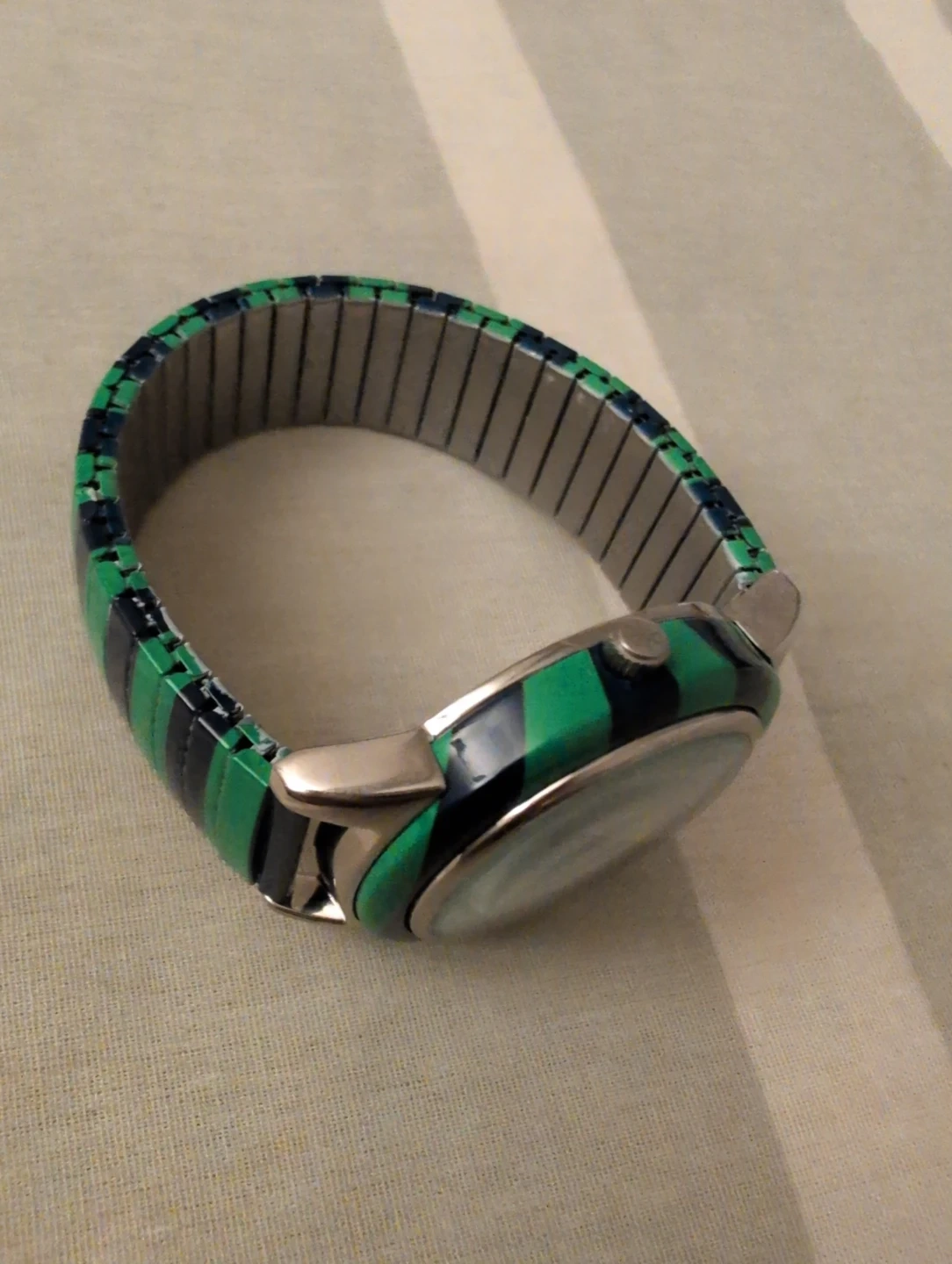 Watch with Green & Black Striped Band - doesn't work!