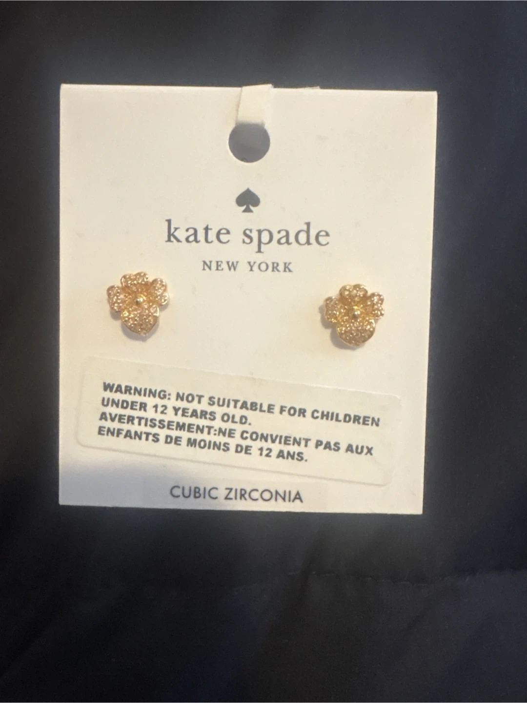 These are a pair of Kate Spade New York flower stud earrings. They are made of cubic zirconia and are brand new!