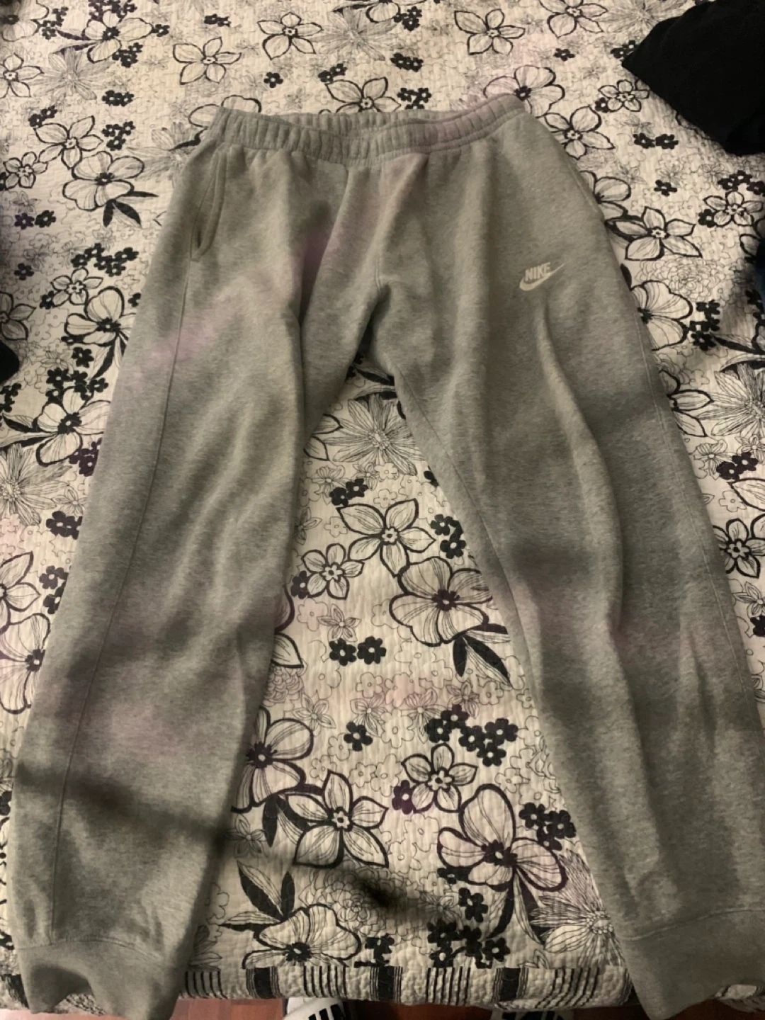 Medium Nikes men sweatpants. Worse a good amount of times. They ’re washed so no need to worried. I just don’t use these anymore.