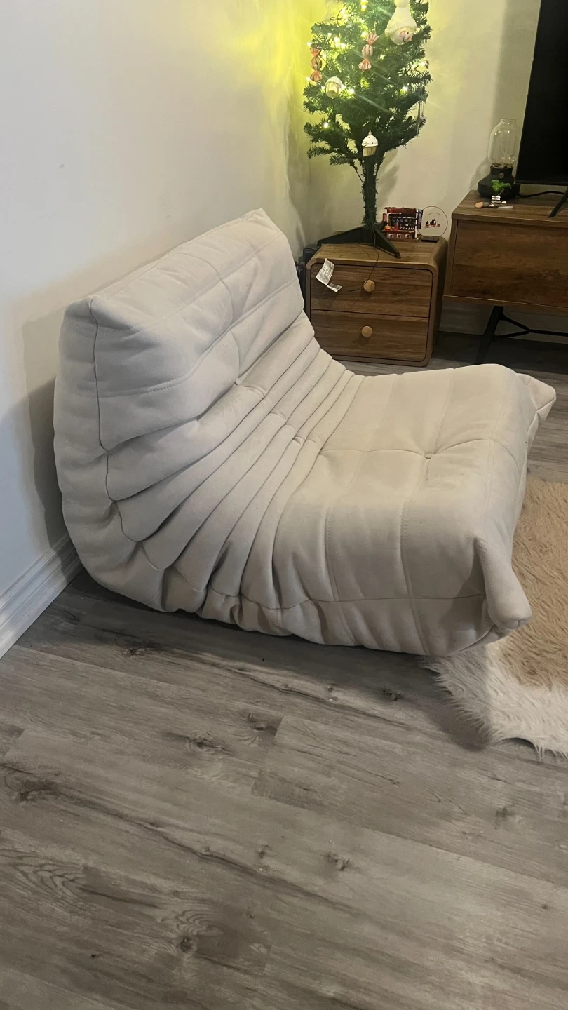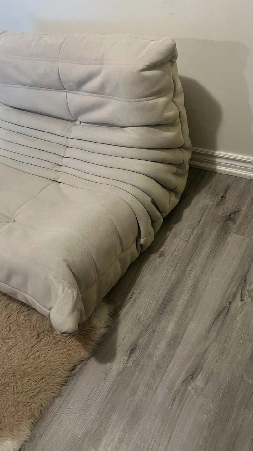 Selling a Ligne Roset Togo chair in beige. It's a stylish and comfortable addition to any living space. Please note that there are some stains on the chair as shown in the photos