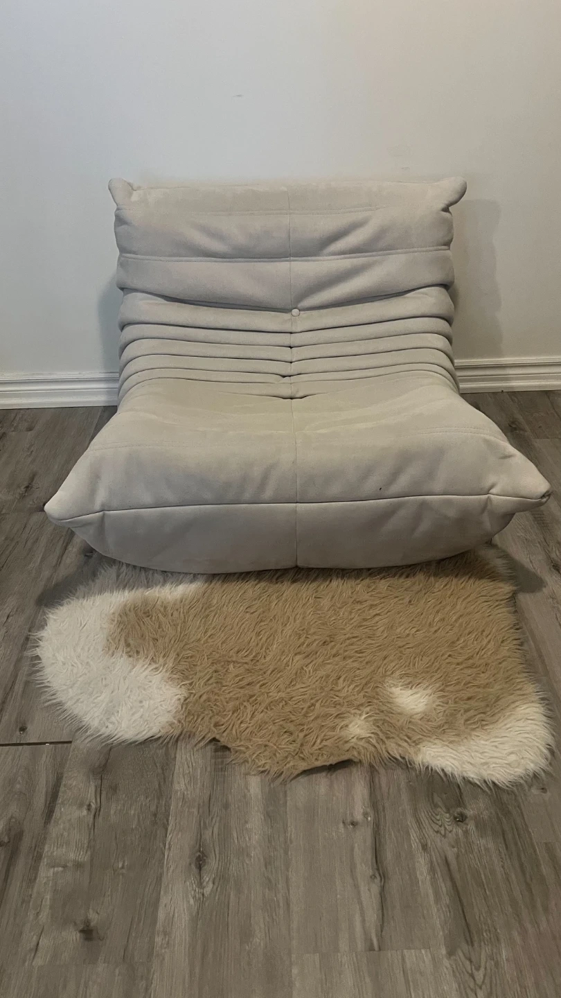 Selling a Ligne Roset Togo chair in beige. It's a stylish and comfortable addition to any living space. Please note that there are some stains on the chair as shown in the photos