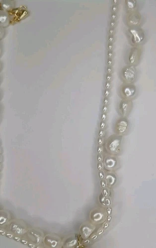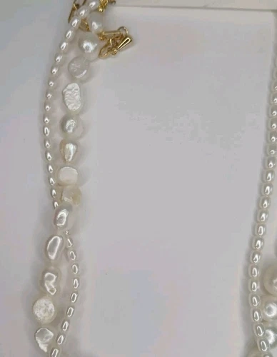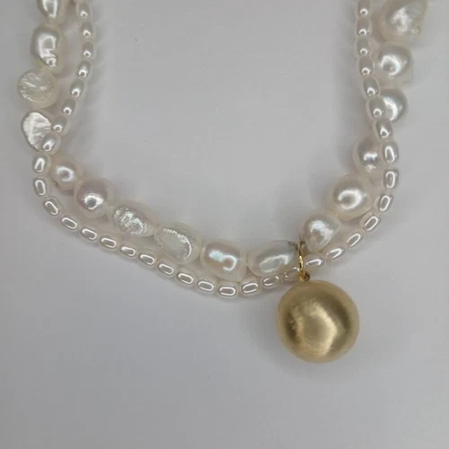 NEW Woman White Pearl Necklace With Golden Pendant