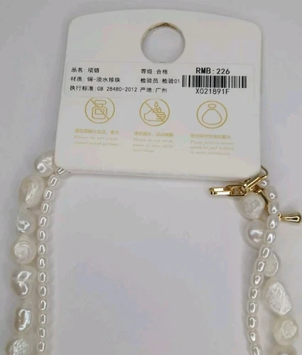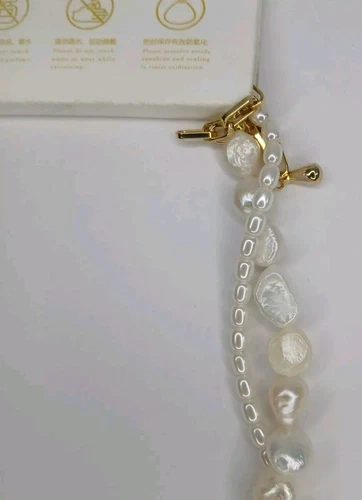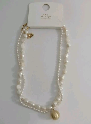 NEW Woman White Pearl Necklace With Golden Pendant