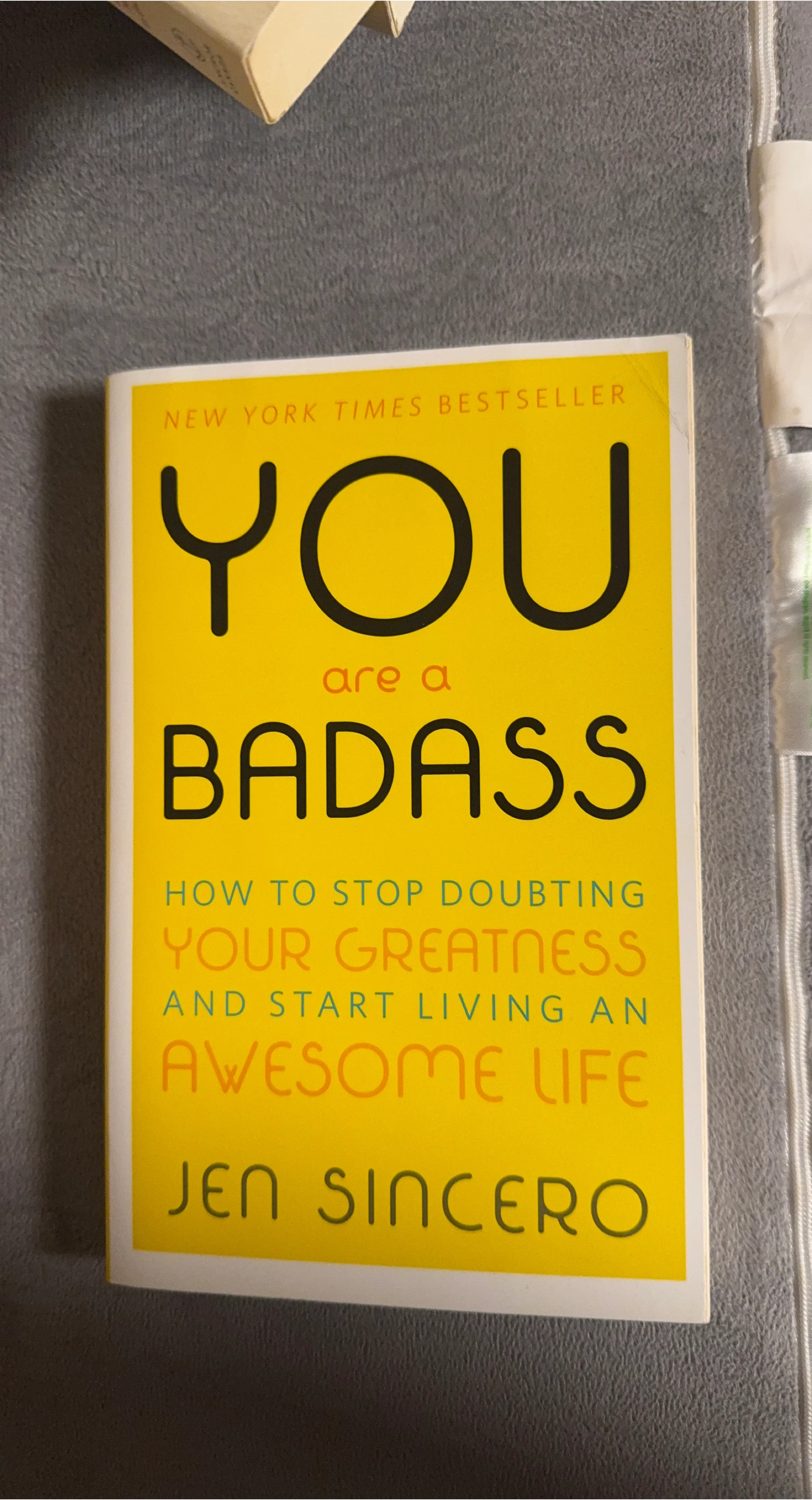 This is the New York Times bestselling book, "You Are a Badass: How to Stop Doubting Your Greatness and Start Living an Awesome Life." It's written by Jen Sincero. This self-help book guides readers to overcome self-doubt and embrace a more awesome life. It's a great read for anyone looking for motivation and personal growth!