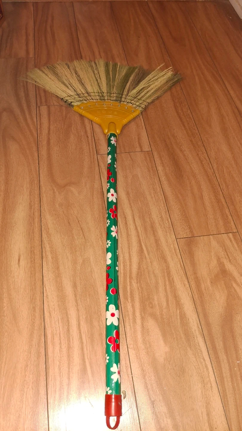 Selling a broom with a cute floral design on the handle. It's new and ready to help keep your home tidy!