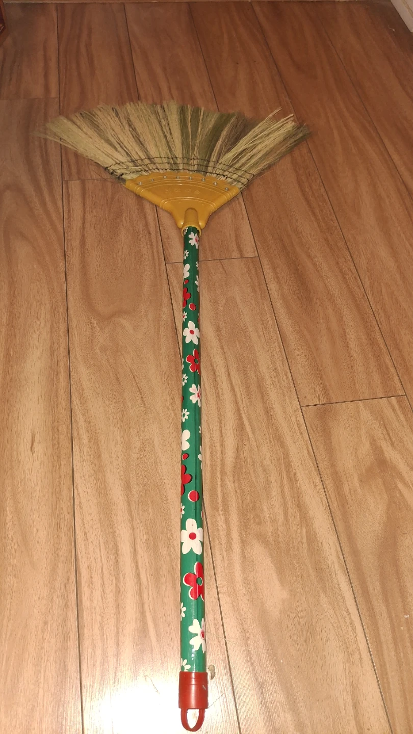 Selling a broom with a cute floral design on the handle. It's new and ready to help keep your home tidy!