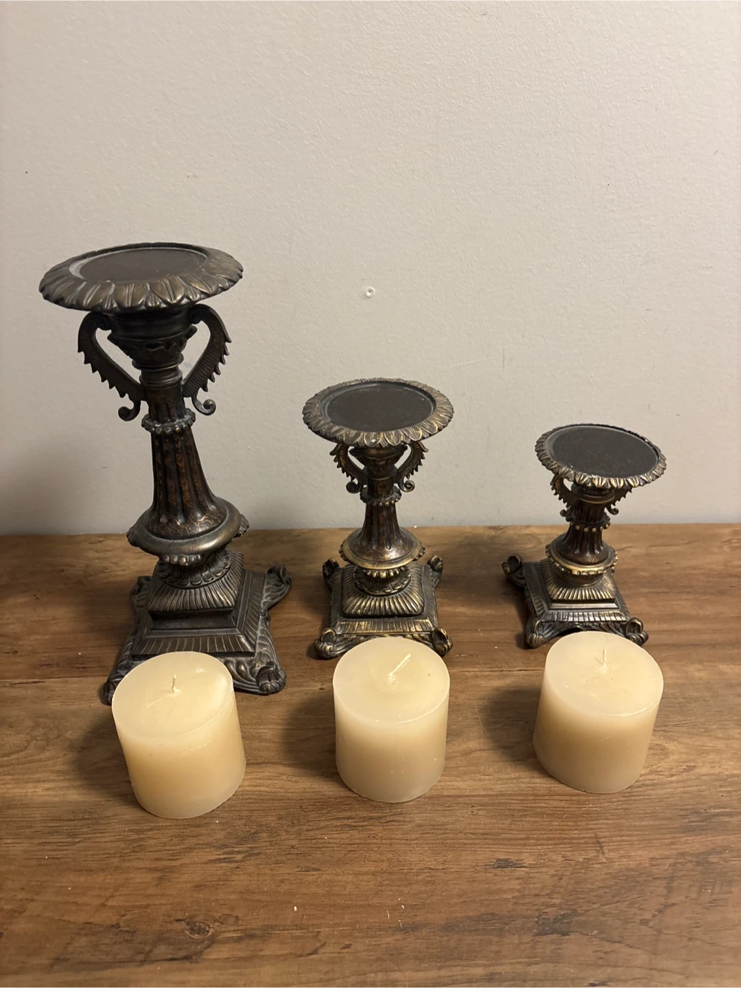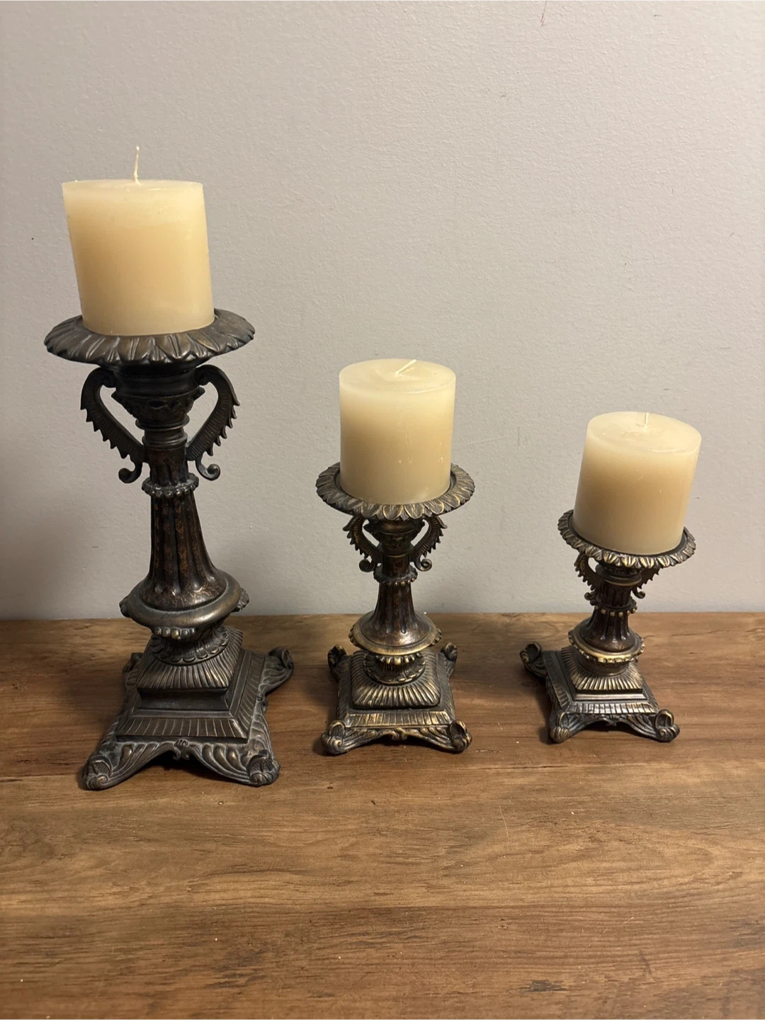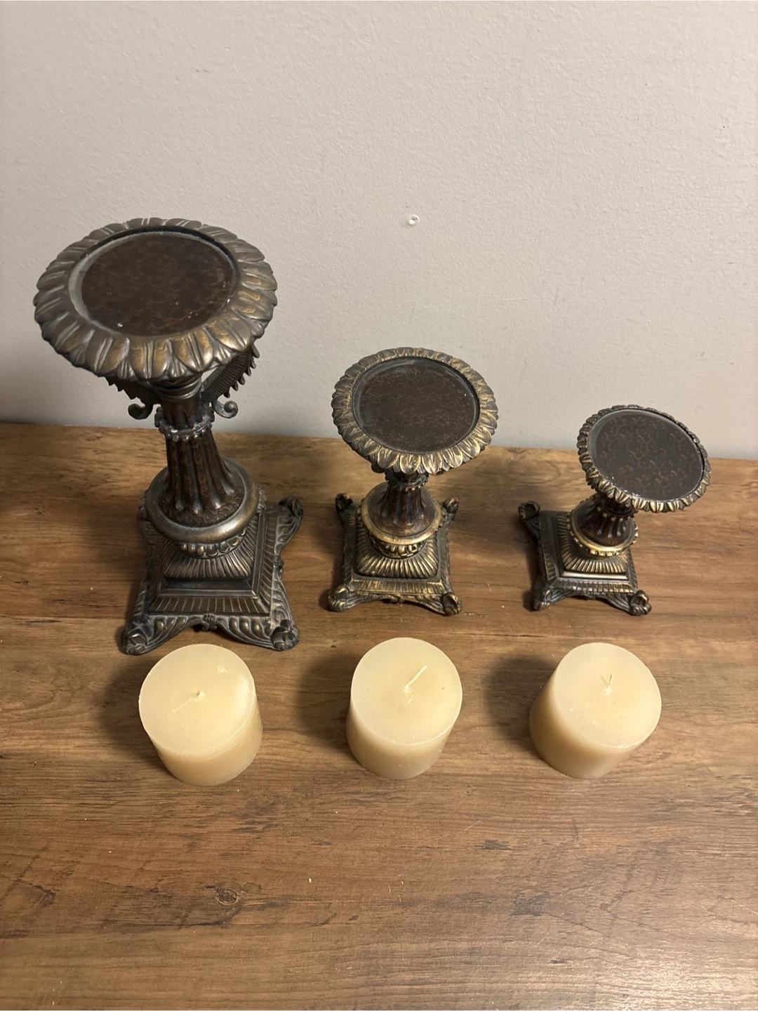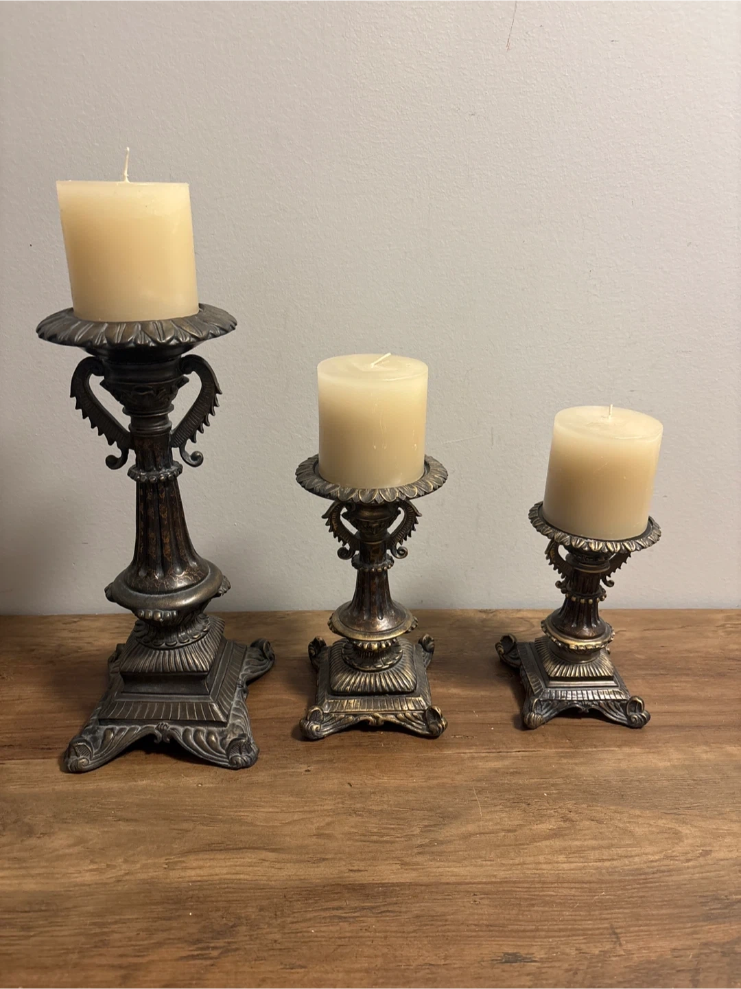 Vintage Set of 3 Ornate Pillar Candle Holders