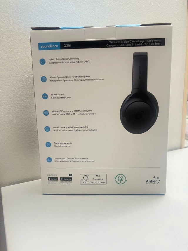 Selling my Soundcore Q20i wireless noise cancelling headphones. They’ve been used but are in good condition and work perfectly with no issues. Great sound quality, strong bass, and long battery life. Comes with the original box and accessories.