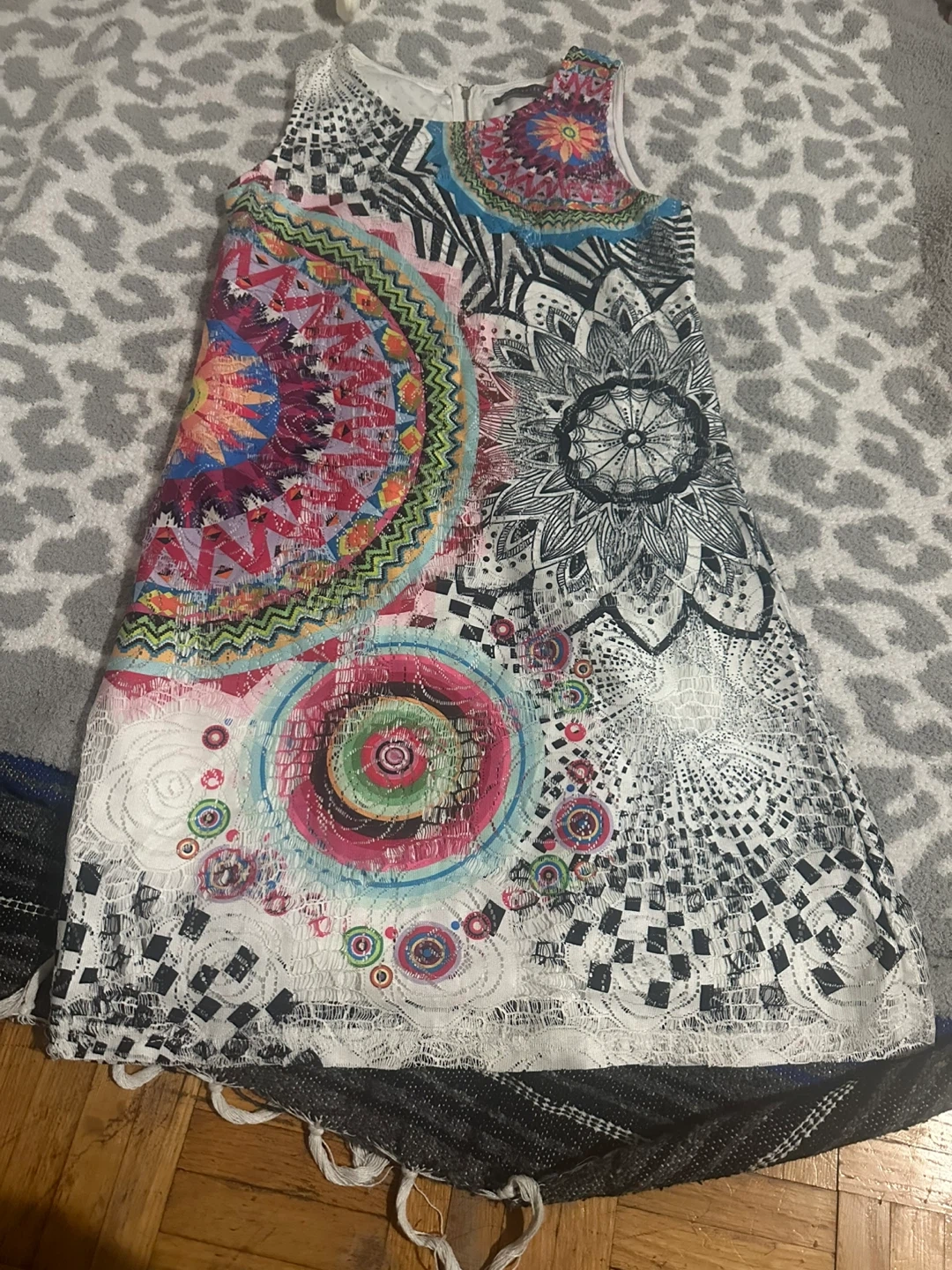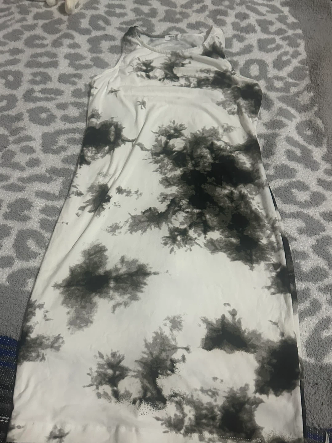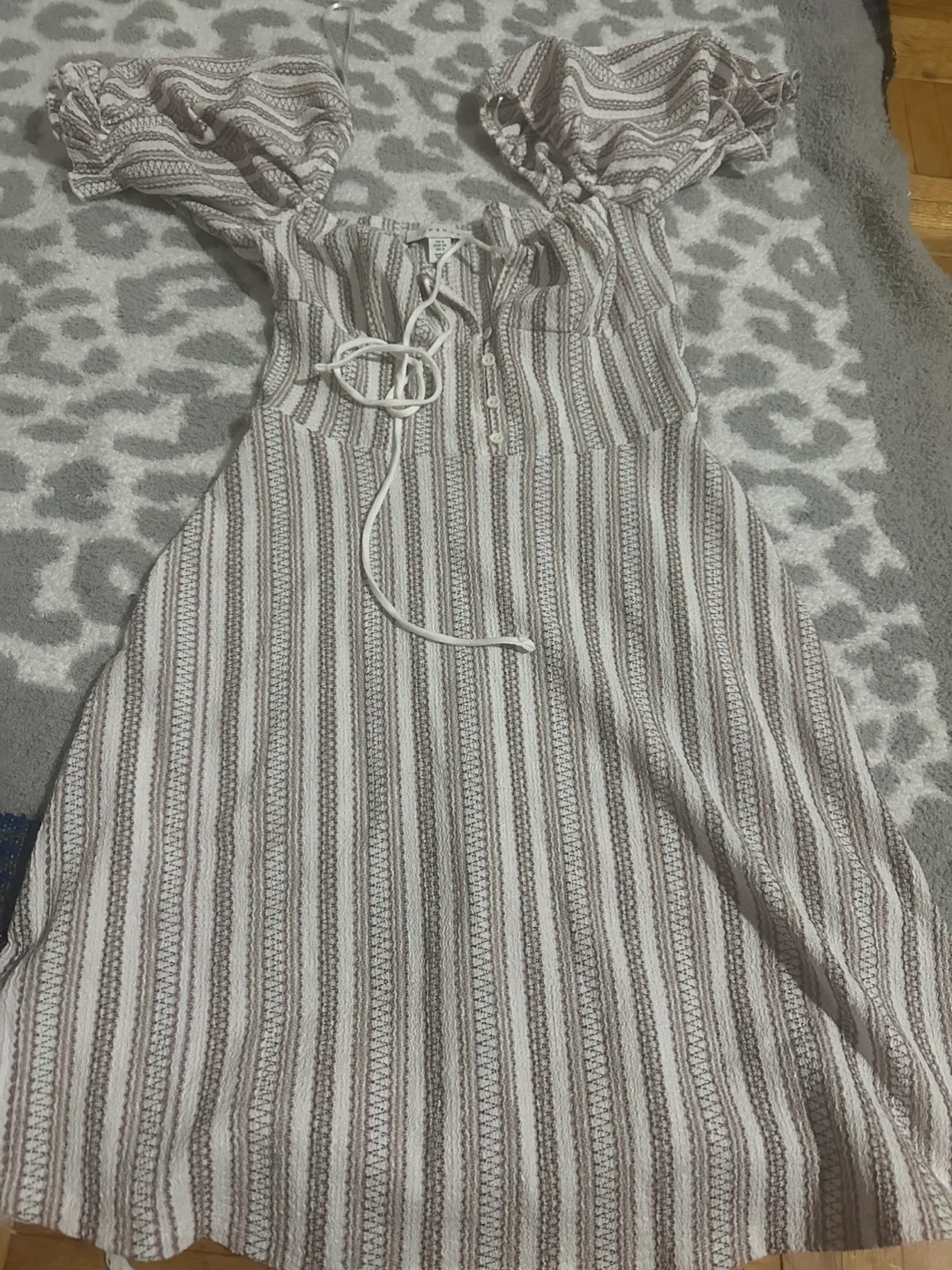 Assorted women's sweater dresses. Includes a grey cable knit midi dress, a striped puff-sleeve sundress, a navy cable knit turtleneck sweater dress, a brown ribbed knit maxi dress, and a black and white face print sweater dress. Various styles and materials are featured.
