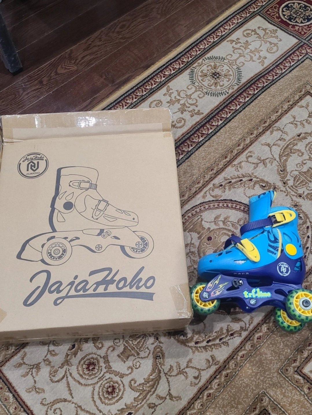 I'm selling a pair of JajaHoho Tri-Line roller skates for kids! They come with the original box. These skates are blue and yellow. ages 3 to 7, adjustable foot size