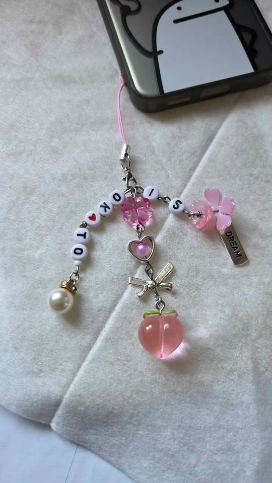 Stay inspired every time you check your phone! This handmade motivational charm features a soft pink aesthetic and a beautiful reminder to keep dreaming. It says "It Is OK To" paired with a "DREAM" metal tag. Perfect for students, entrepreneurs, or anyone who needs a little daily boost of positivity. I can make it as a keychain charm. DM for custom message.
